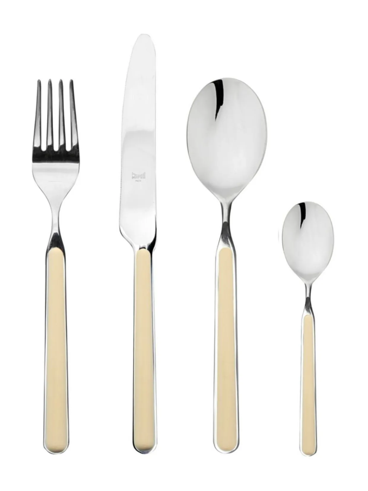 Lasikuidulla rikastettu hartsinen kahvaosa takaa aterimien kestävyyden ja värejen kirkkauden monien pesukertojenkin jälkeen. Kahvan hartsiosat ovat ultraäänihitsattuja mikä tekee kahvaosasta pitkäkestoisen. Materiaali ruostumatonta terästä, kahvaosat hartsia. Konepesunkestävä. Valmistettu Italiassa.Tuotenumero1518983 Materiaaliruostumaton teräs, hartsi, lasikuitu VäriSESAME Avainsanataterimet, aterinsetti, väri, värilliset aterimet