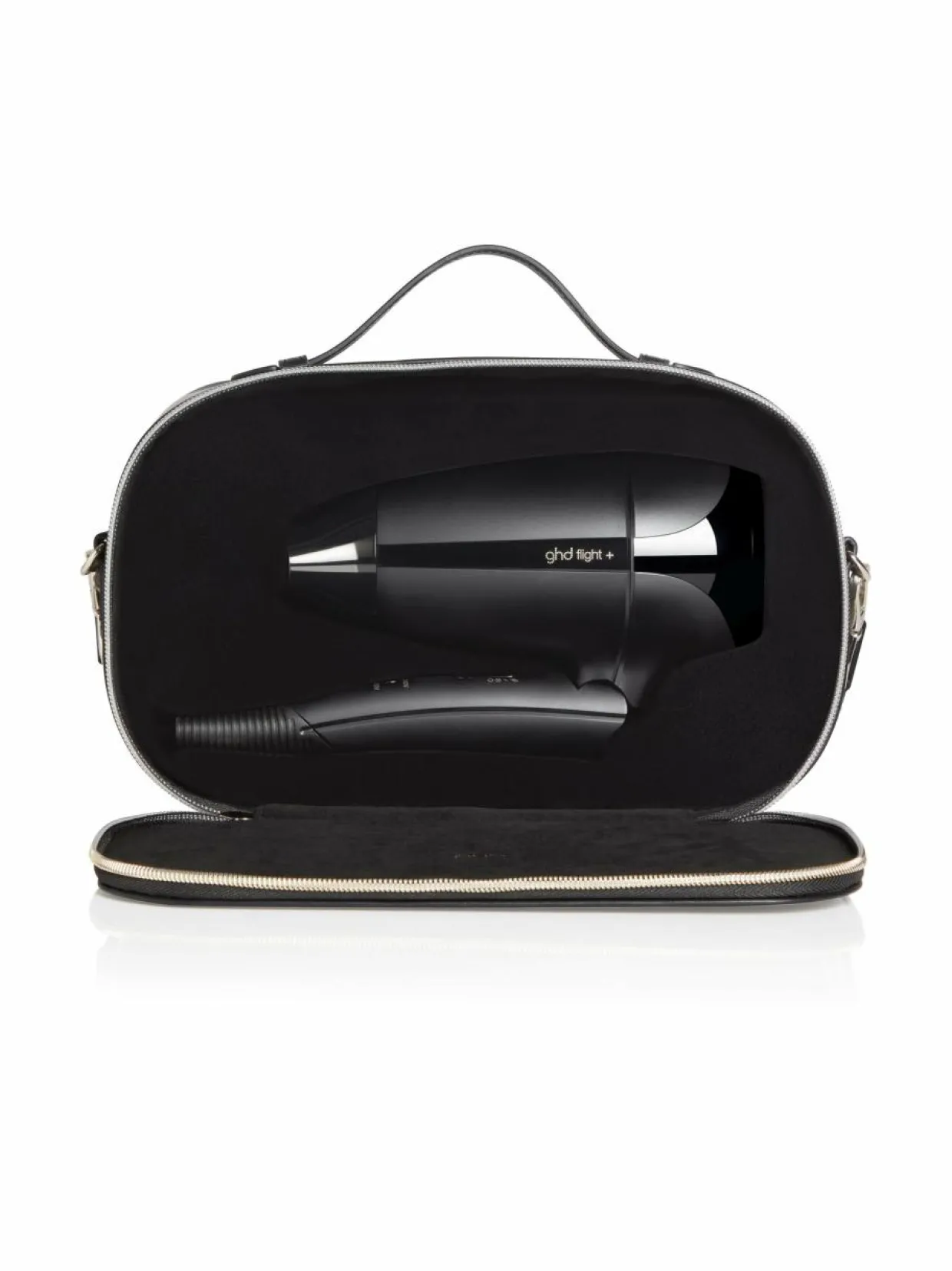 - ghd Flight + Travel -hiustenkuivaajan mukana tulee säilytyslaukku, joka suojaa kuivaajaa matkoilla.