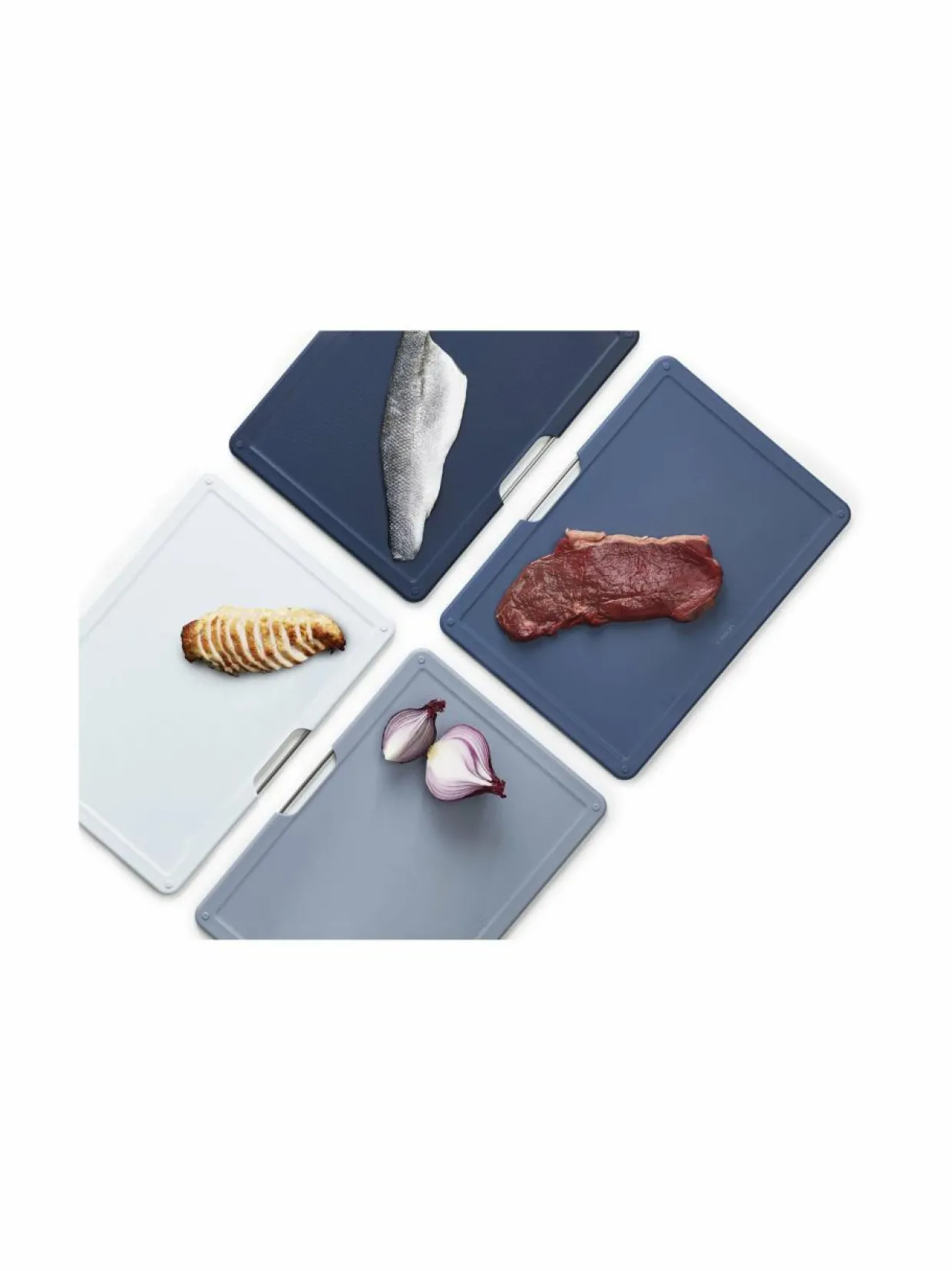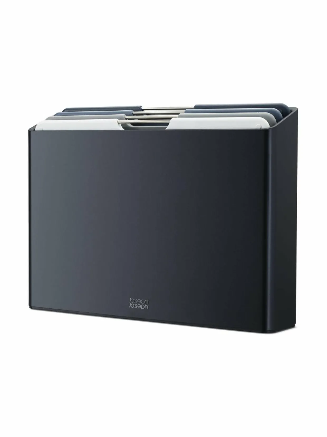 Joseph Josephin Folio-leikkuulaudat pysyvät tyylikkäässä telineessä siistissä järjestyksessä ja kuivuvat ilmavasti ja tasaisesti. Leikkuulaudat on helppo nostaa telineestä ruostumattomasta teräksestä valmistetusta kahvasta. Pakkauksessa on neljä leikkuulautaa, joissa on luistamaton pohja ja veitselle soveltuva pinta.