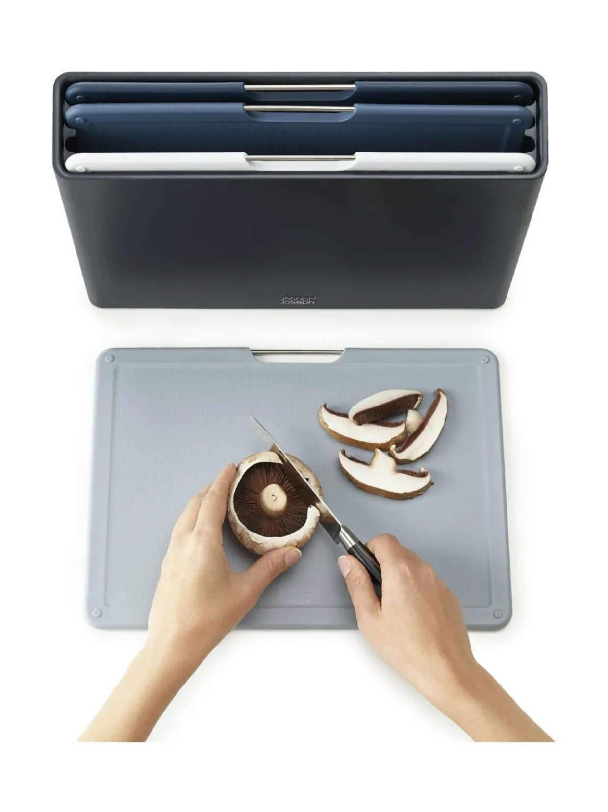 Tuotenumero147436472 MateriaaliMuovia ja terästä ValmistusmaaKiina VäriGRAPHITE Koko26,2 x 35,7 x 7,6 cm AvainsanatJoseph Joseph, leikkuulautasetti, leikkuulauta