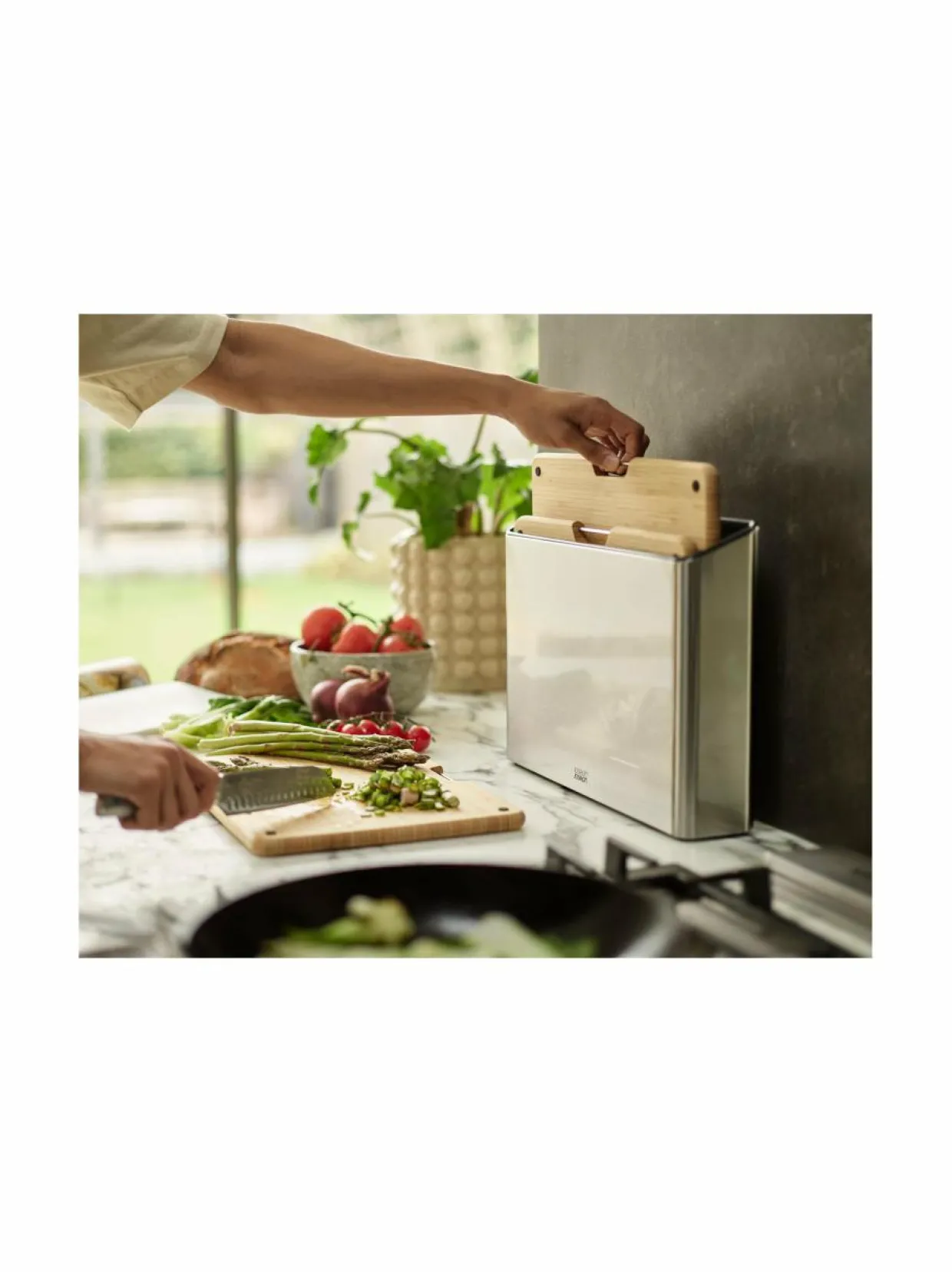 Joseph Josephin Folio-leikkuulaudat pysyvät tyylikkäässä telineessä siistissä järjestyksessä ja kuivuvat ilmavasti ja tasaisesti. Leikkuulaudat on helppo nostaa telineestä ruostumattomasta teräksestä valmistetusta kahvasta. Pakkauksessa on kolme leikkuulautaa, joissa on luistamaton pohja ja veitselle soveltuva pinta.