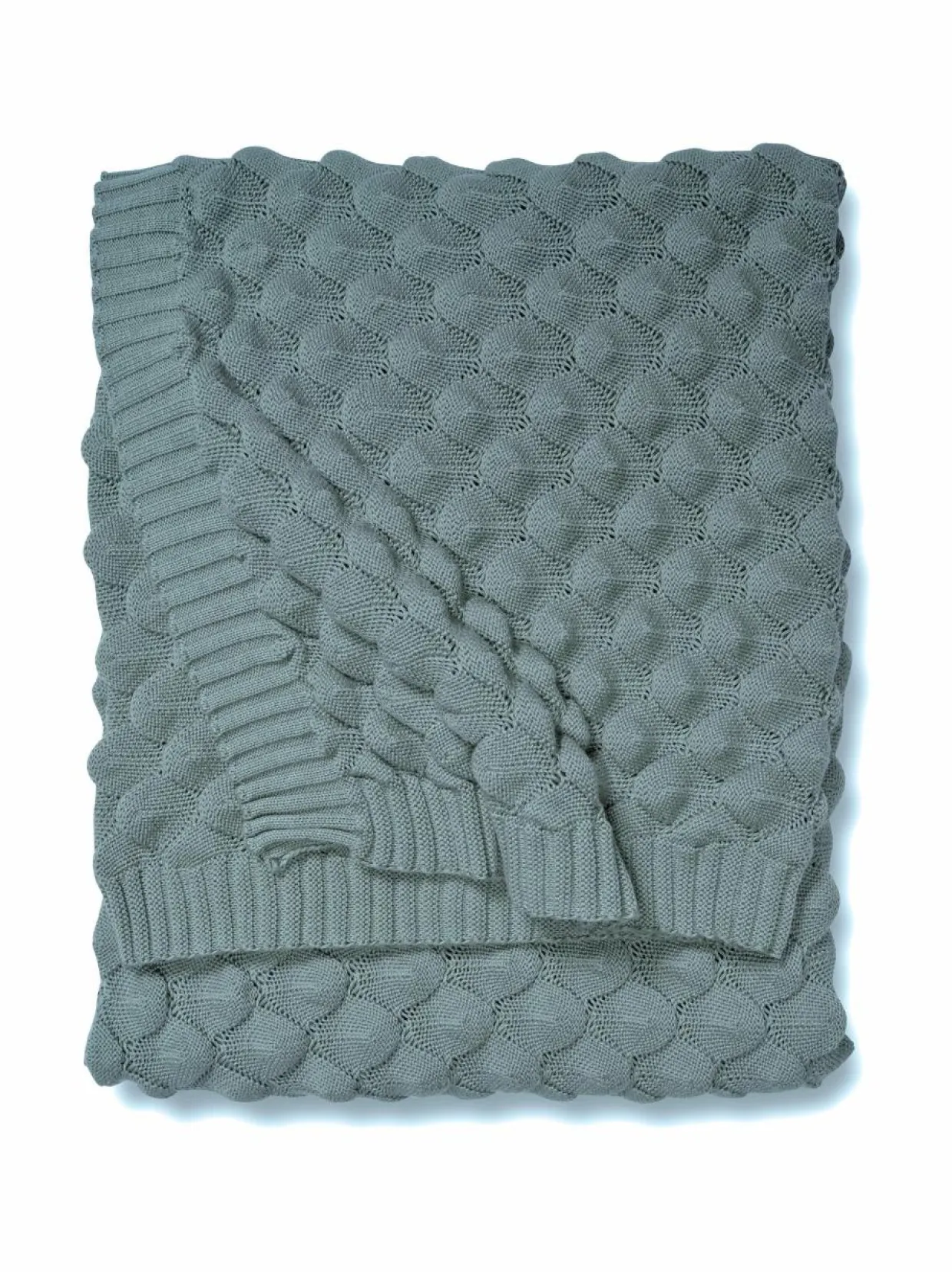 Gems-huopa on neulottu pehmeästä puuvillasta. Peitto on yhtä mukava sohvalla kuin sängyssäkin. Kuvio muistuttaa kalan suomuja.
