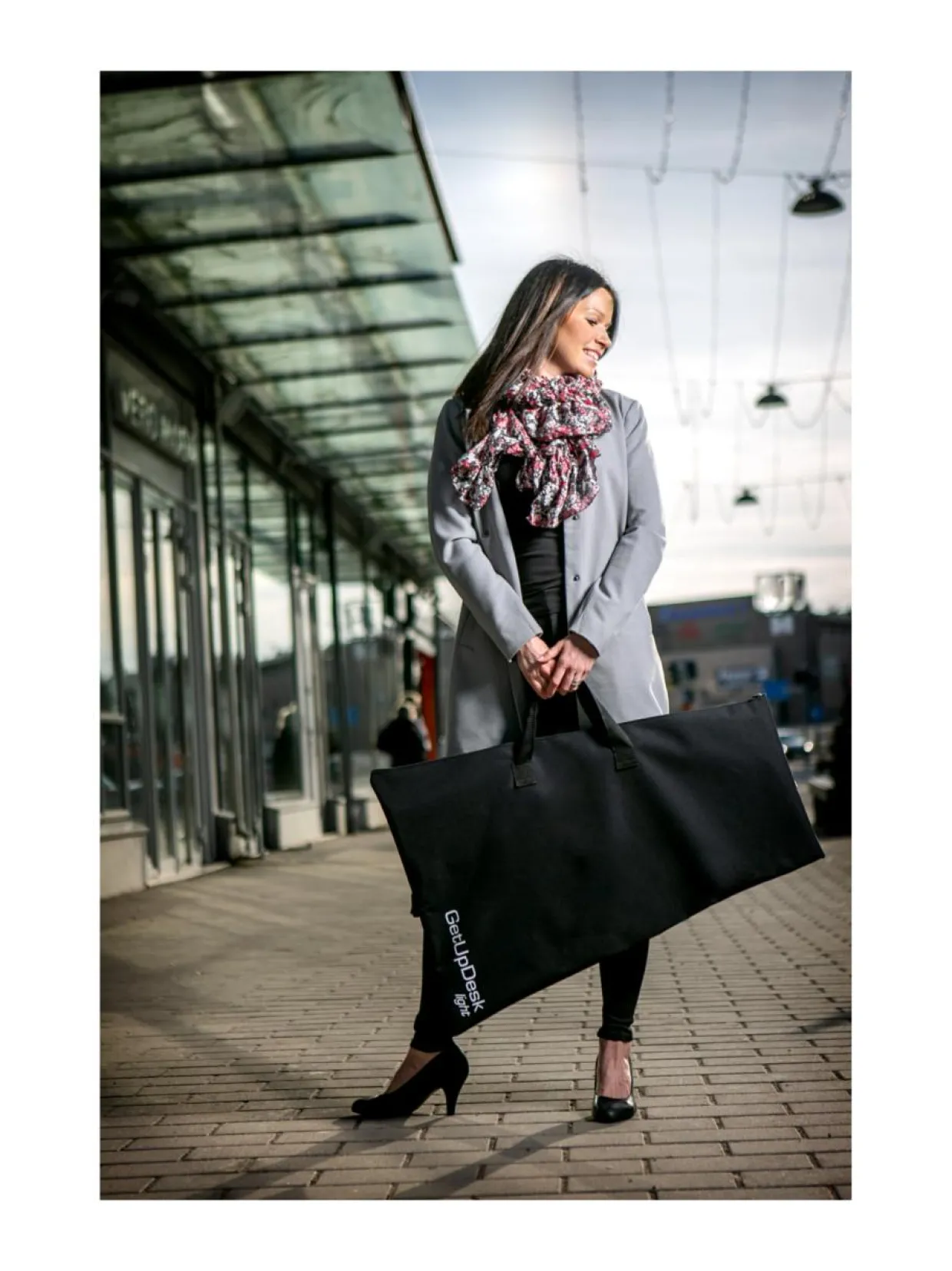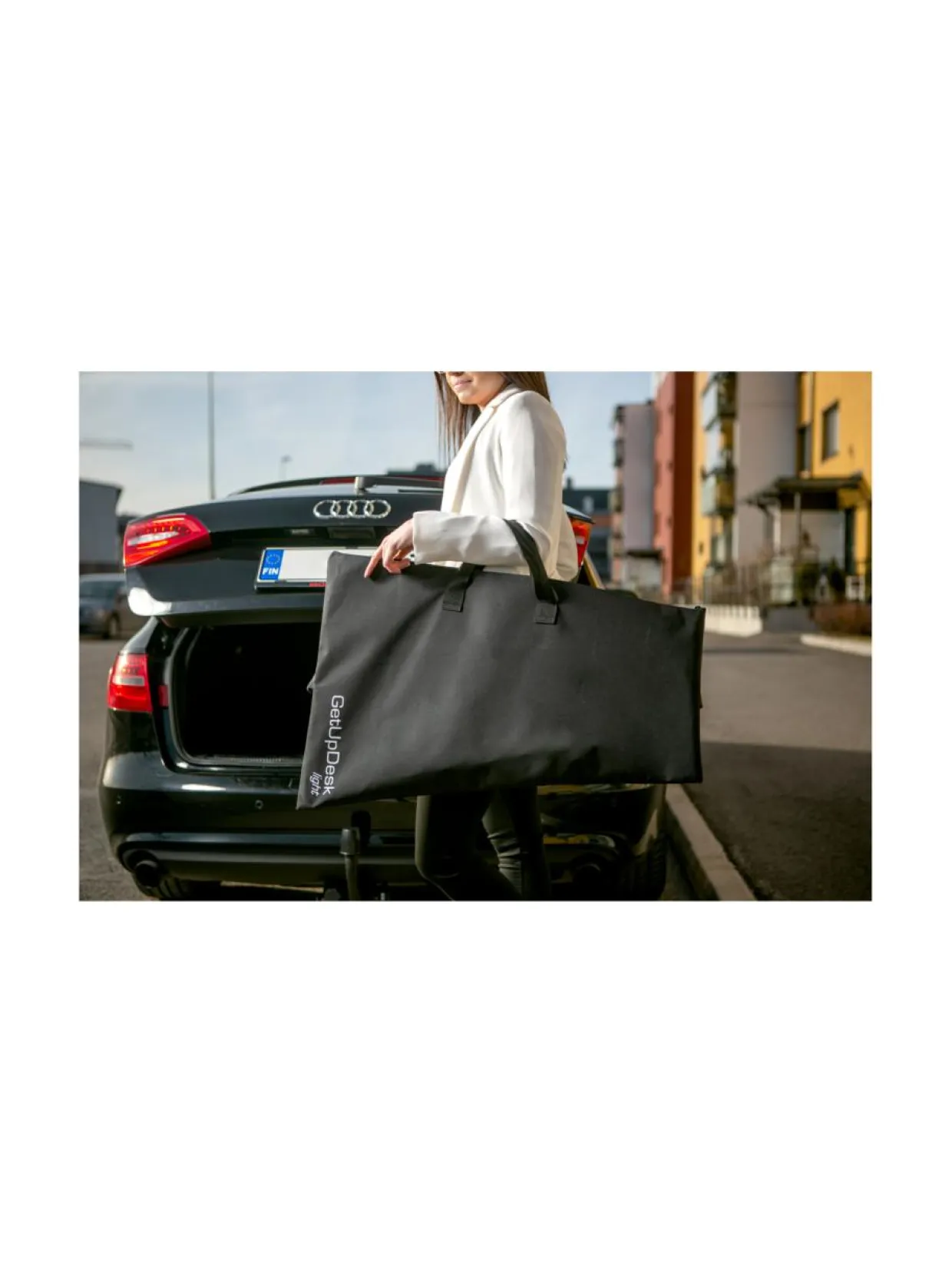 Kätevä kanto-/säilytyskassi GetUpDesk Light säädettävälle pöytätasolle. Tällä kassilla kuljetat kätevästi GetUpDesk lightin missä milloinkin tarvitset. Sisältää olkahihnan ja kantokahvan.