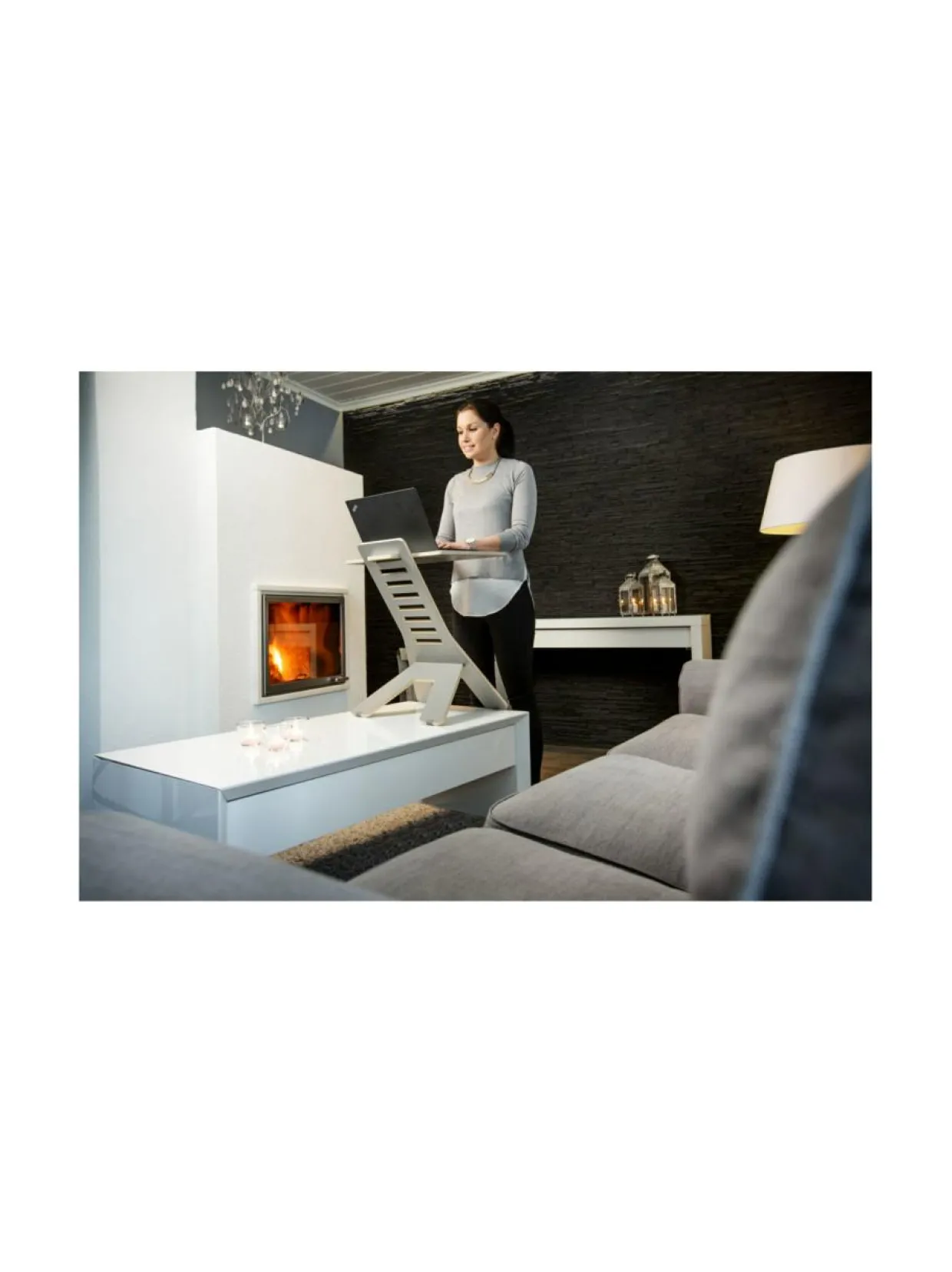 Tuotenumero1184215 VäriVALKOINEN/HARMAA Avainsanatkannettavan teline, ergonomia, ergonominen työtaso, seisomatyö, kotimainen, läppäriteline