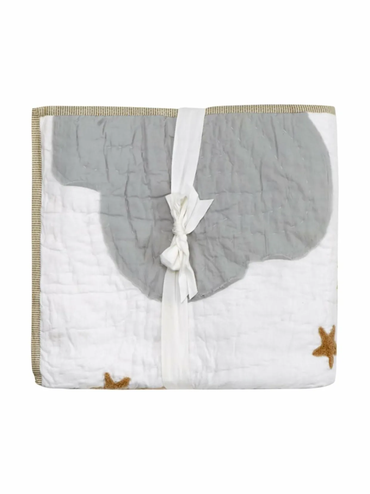 Suloinen lasten päiväpeitto 100 % puuvillaa. Herkullisissä pastellisävyisessä peitossa on kaunis eläinaiheinen applikaatio, joka on valmistettu puuvillasta ja villahuovasta.