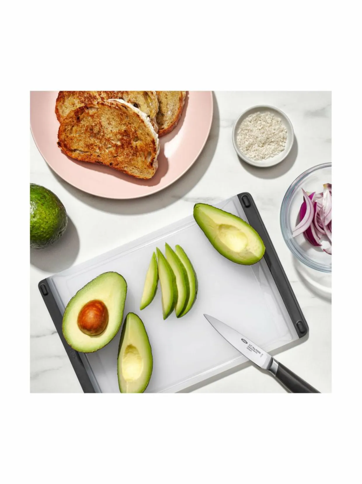 OXO Good Grips Prep on kätevä ja kompakti leikkuulauta, joka sopii täydellisesti pienten tehtävien hoitamiseen. Sen pienikokoinen muotoilu tekee siitä ihanteellisen vihannesten, hedelmien tai juuston leikkaamiseen. Leikkuulauta on valmistettu astianpesukoneen kestävästä materiaalista, joka estää veden ja hajujen tunkeutumisen leikkuupintaan. Kaksipuolinen muotoilu auttaa välttämään ristikontaminaation. Voit käyttää toista puolta vaikkapa lihan ja toista puolta vihannesten leikkaamiseen. Pehmeät, kapeat reunat toimivat kahvoina, jotka tekevät leikkuulaudan nostamisesta ja kantamisesta mukavaa. Pohja on liukumaton.