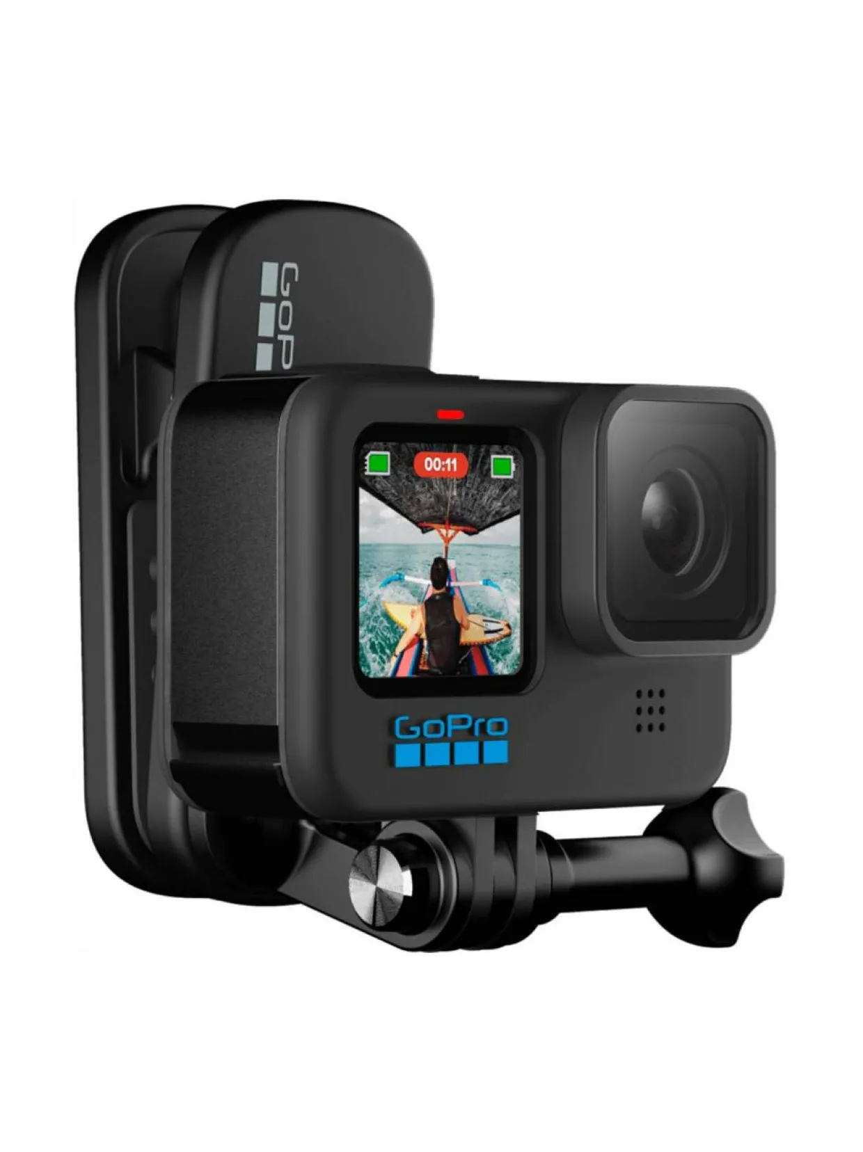 Kiinnitä GoPro kamerasi tällä klipsillä esimerkiksi reppusi hihnaan tai varusteisiisi. Klipsissä on myös magneetti jonka avulla voit kiinnittää kameran lähes mihin tahansa metalliseen objektiin.