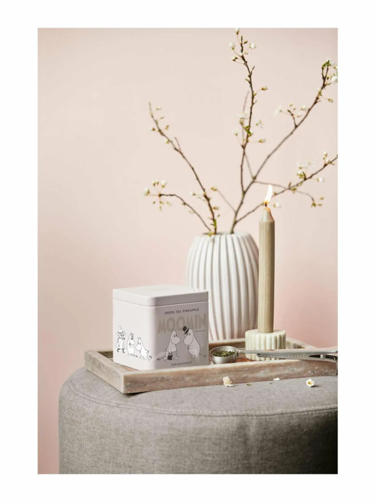 Tämä huolellisesti valmistettu sekoitus vihreää teetä ja tuoretta ananasta tarjoaa virkistävän, täyteläisen maun. Nauti vihreän teen ananasen ainutlaatuisesta mausta kauniissa purkkipurkissa, jonka ympärillä on enemmän tunnettuja Muumi-hahmoja. Tämä malli on tehty Tove Janssonin Muumi-maailman 2025 80-vuotisjuhlaan. Ainesosat: Vihreä tee (66%), sitruunaruoho, ananas (10%) (ananas, sokeri, happamuudensäätöaine: sitruunahappo), aromi, lakritsi, inkivääri (3%), piparmintunlehdet, sitruunankuoret, mustapippuri. Ingredienser: Grönt te (66%), citrongräs, ananas (10%) (ananas, socker, surhetsreglerande medel: citronsyra), arom, lakrits, ingefära (3%), pepparmyntablad, citronskal, svartpeppar.