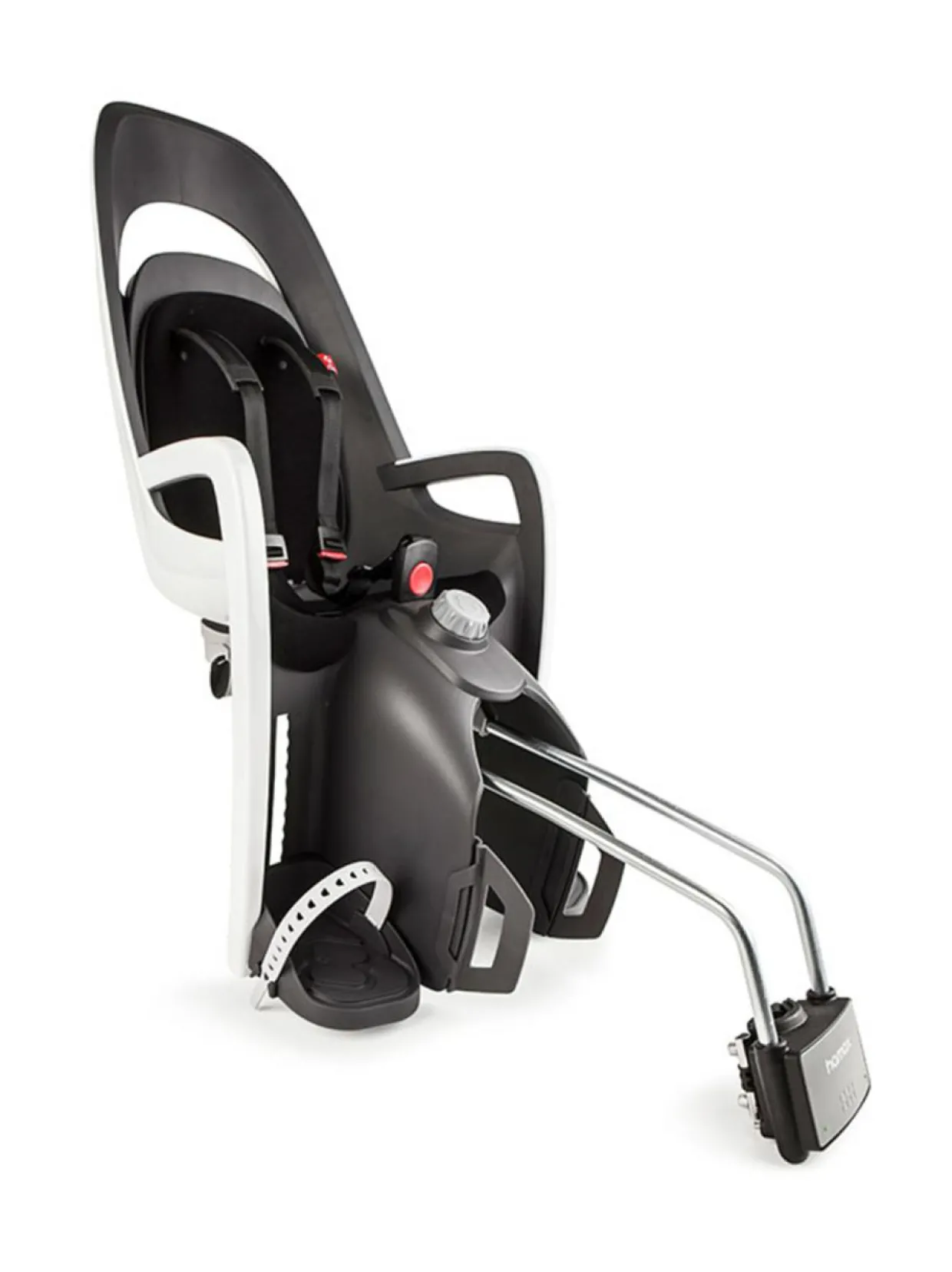 Caress -pyöränistuimen mukana tulee pyöränistuimen lisäksi adapteri, jolla se saadaan kiinnitettyä pyörän runkoon. Voit ostaa myös lisävarusteissa myytävän Hamax lisäkiinnityspala toiseen pyörään – uusi malli, jos haluat käyttää pyöränistuinta esimerkiksi kummankin vanhemman pyörässä. Jos adapteri on valmiina pyörässä, on Caress -pyöränistuin erittäin helppo vaihtaa pyörästä toiseen.
