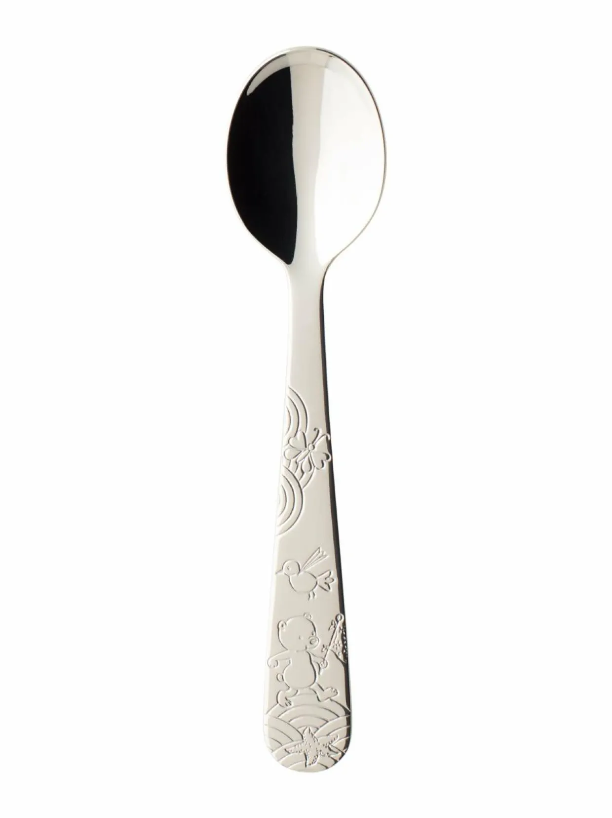 Villeroy & Bochin aterinsetti sisältää ruostumattomasta teräksestä valmistetun haarukan, veitsen, ruokalusikan ja jälkiruokalusikan. Aterimet on kuvioitu hauskalla eläinaiheella, joka tuo iloa lasten ruokailuhetkeen. Konepesu.