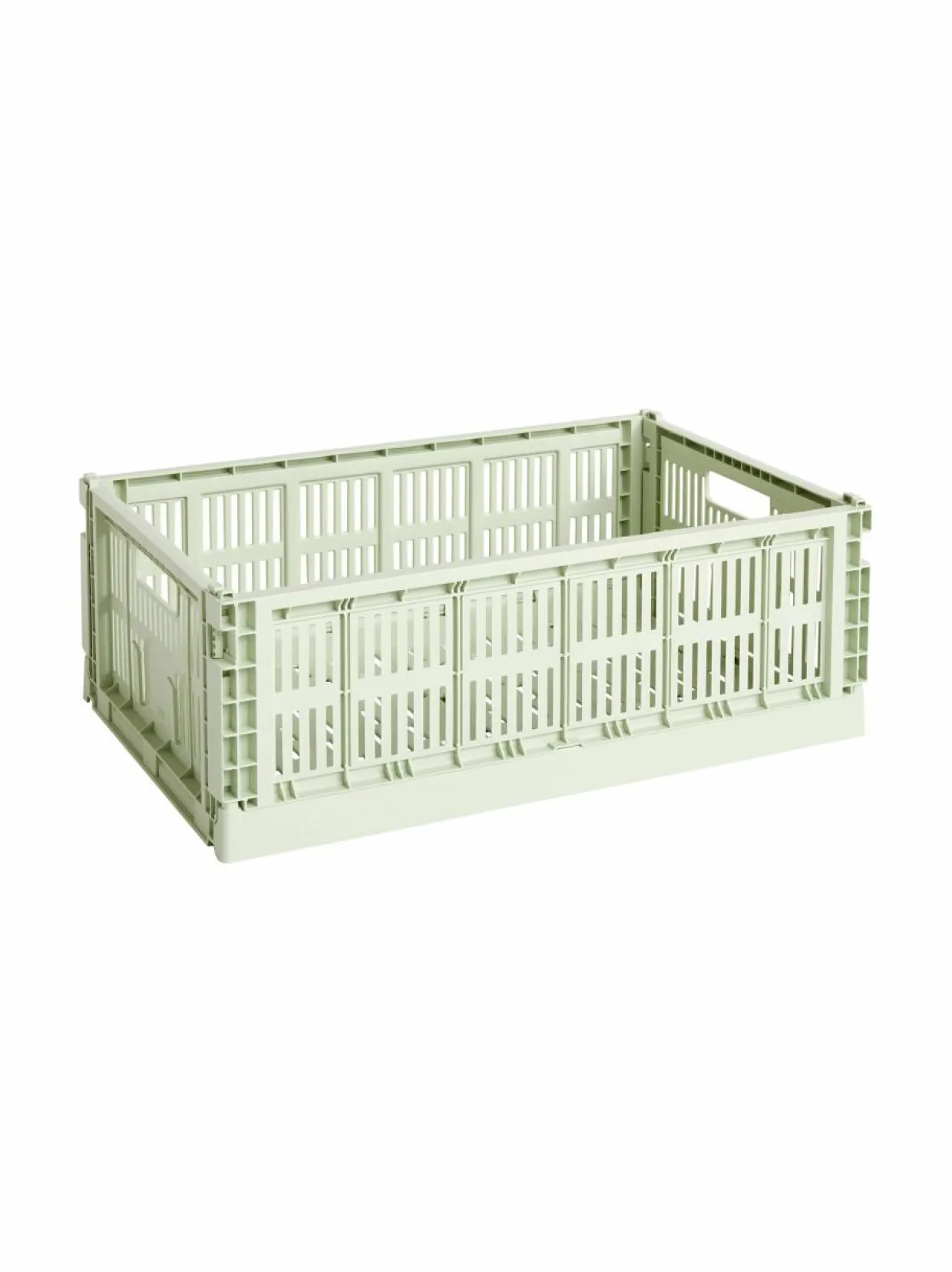 HAYn Colour Crate -kokoelman säilytyskorit tuovat kodin järjestämiseen näppärää teollista estetiikkaa sekä funktionaalista muotoilua. Kompaktit, pinottavat muovikorit tarjoavat oivan ja helposti muunneltavan säilytyspaikan niin leluille kuin toimistotarvikkeille, ja niiden ilmava ja rei’itetty rakenne sopii hyvin myös ruokien ja kylpyhuonetarvikkeiden säilytykseen. Korin valmistukseen on käytetty kierrätyspolypropeeniä.