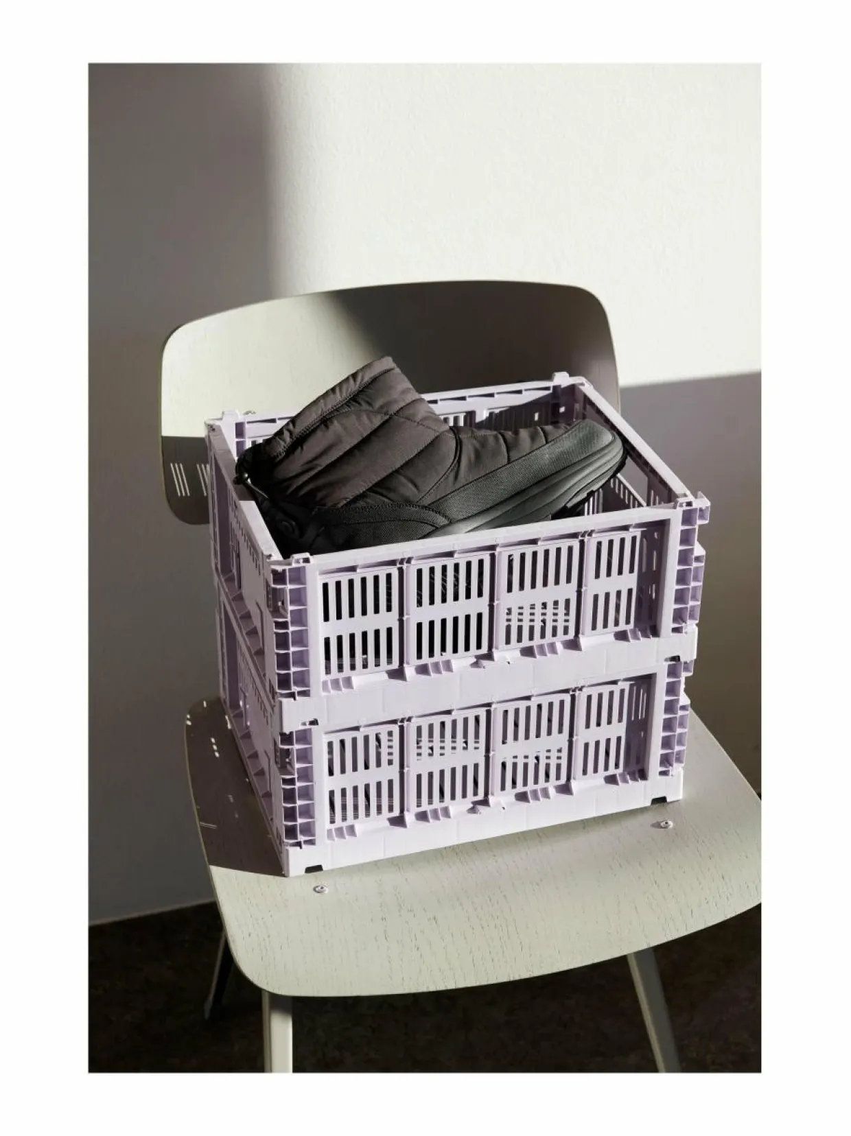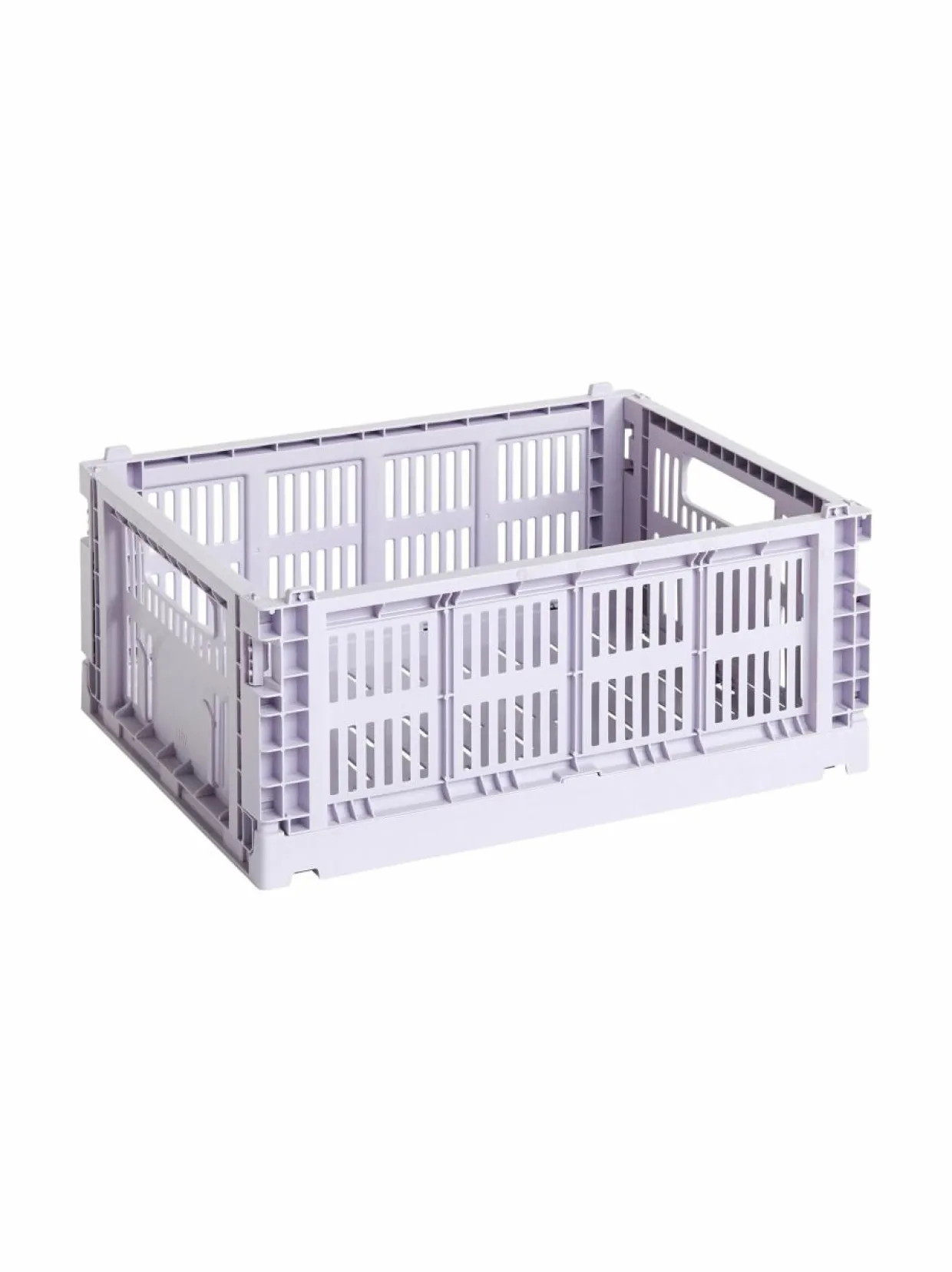 HAYn Colour Crate -kokoelman säilytyskorit tuovat kodin järjestämiseen näppärää teollista estetiikkaa sekä funktionaalista muotoilua. Kompaktit, pinottavat muovikorit tarjoavat oivan ja helposti muunneltavan säilytyspaikan niin leluille kuin toimistotarvikkeille, ja niiden ilmava ja rei’itetty rakenne sopii hyvin myös ruokien ja kylpyhuonetarvikkeiden säilytykseen. Korin valmistukseen on käytetty kierrätyspolypropeeniä.