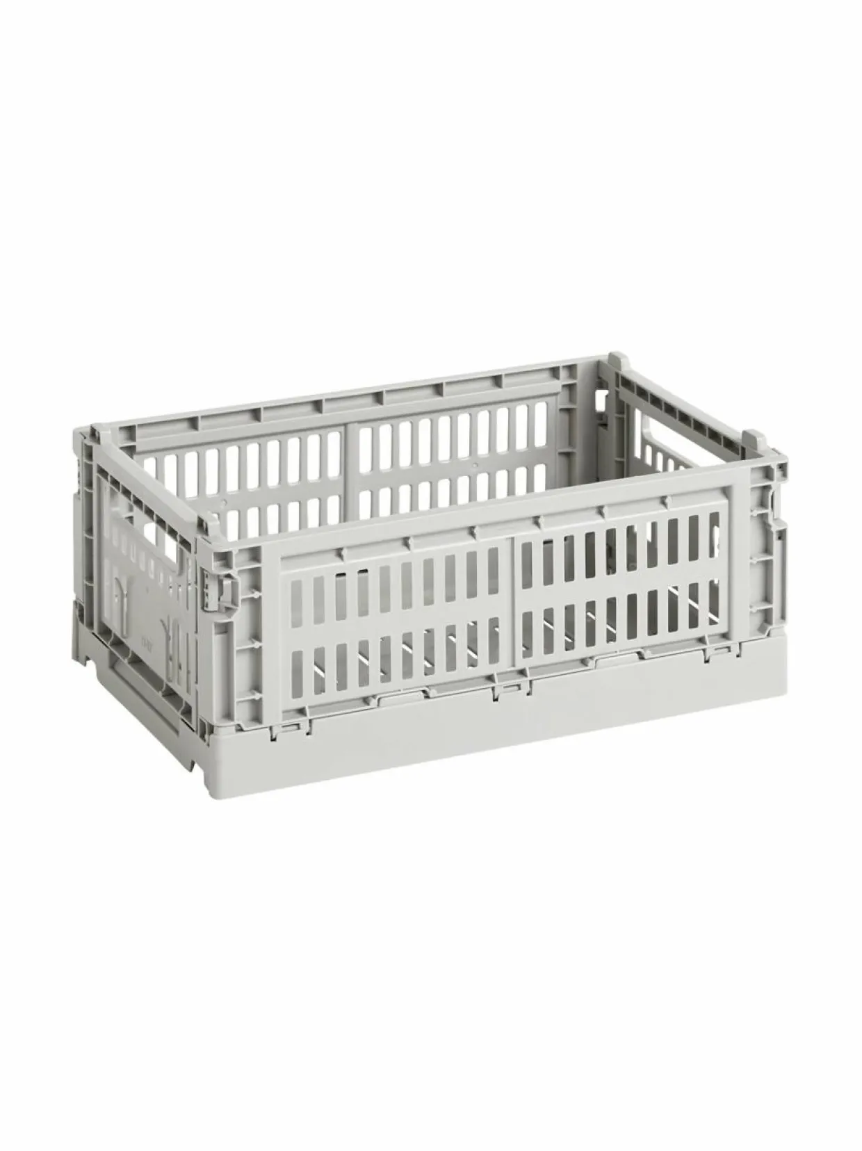 HAYn Colour Crate -kokoelman säilytyskorit tuovat kodin järjestämiseen näppärää teollista estetiikkaa sekä funktionaalista muotoilua. Kompaktit, pinottavat muovikorit tarjoavat oivan ja helposti muunneltavan säilytyspaikan niin leluille kuin toimistotarvikkeille, ja niiden ilmava ja rei’itetty rakenne sopii hyvin myös ruokien ja kylpyhuonetarvikkeiden säilytykseen. Korin valmistukseen on käytetty kierrätyspolypropeeniä.