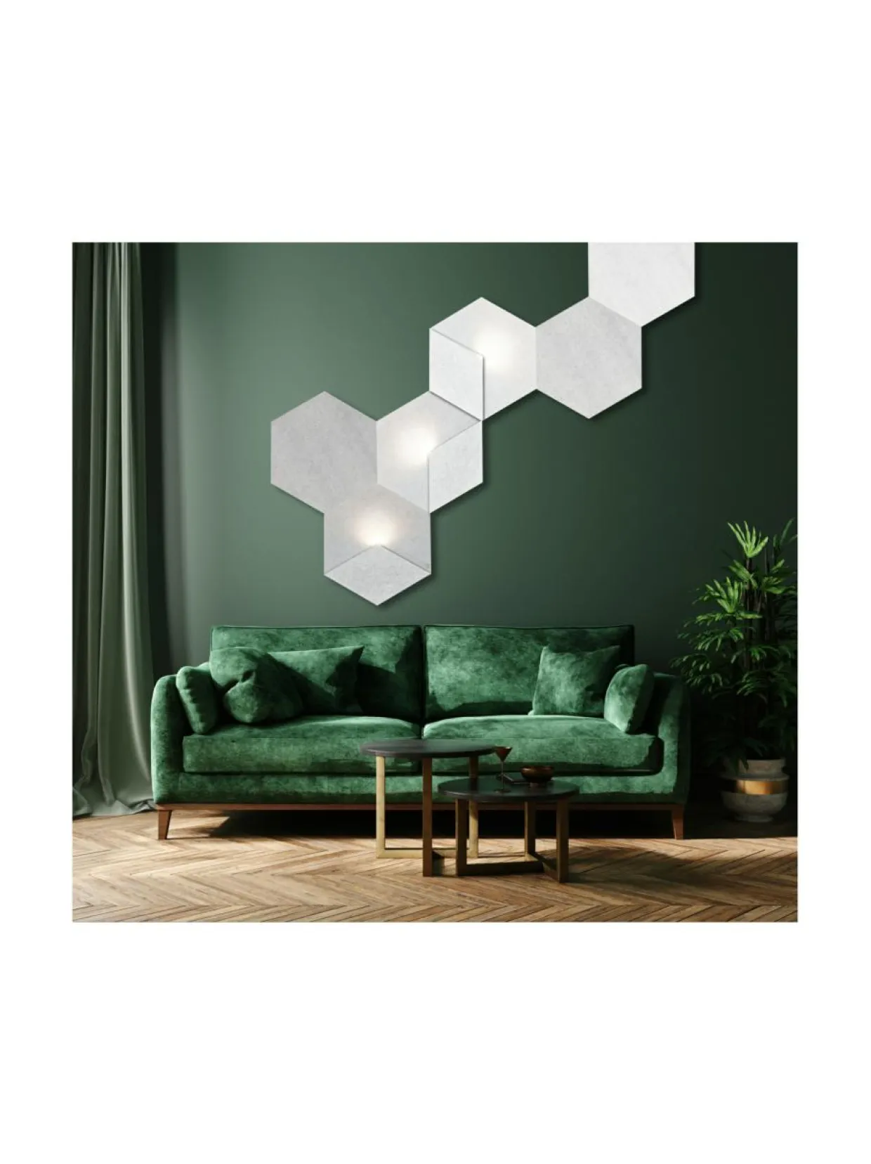 Heksagon valoelementti on ainutlaatuinen akustiikkapaneeli, joka luo valollaan ihanaa tunnelmaa tilaan. Siinne Heksagon valoelementti sopii hyvin käytettäväksi kaikkiin kodin tiloihin esimerkiksi portaikkoon tai olohuoneiseen. Heksagon 3 sisältää 3 kpl toisiinsa liitettävää valoelementtiä, jotka voi yhdistää toisiinsa tilaan sopivalla tavalla.