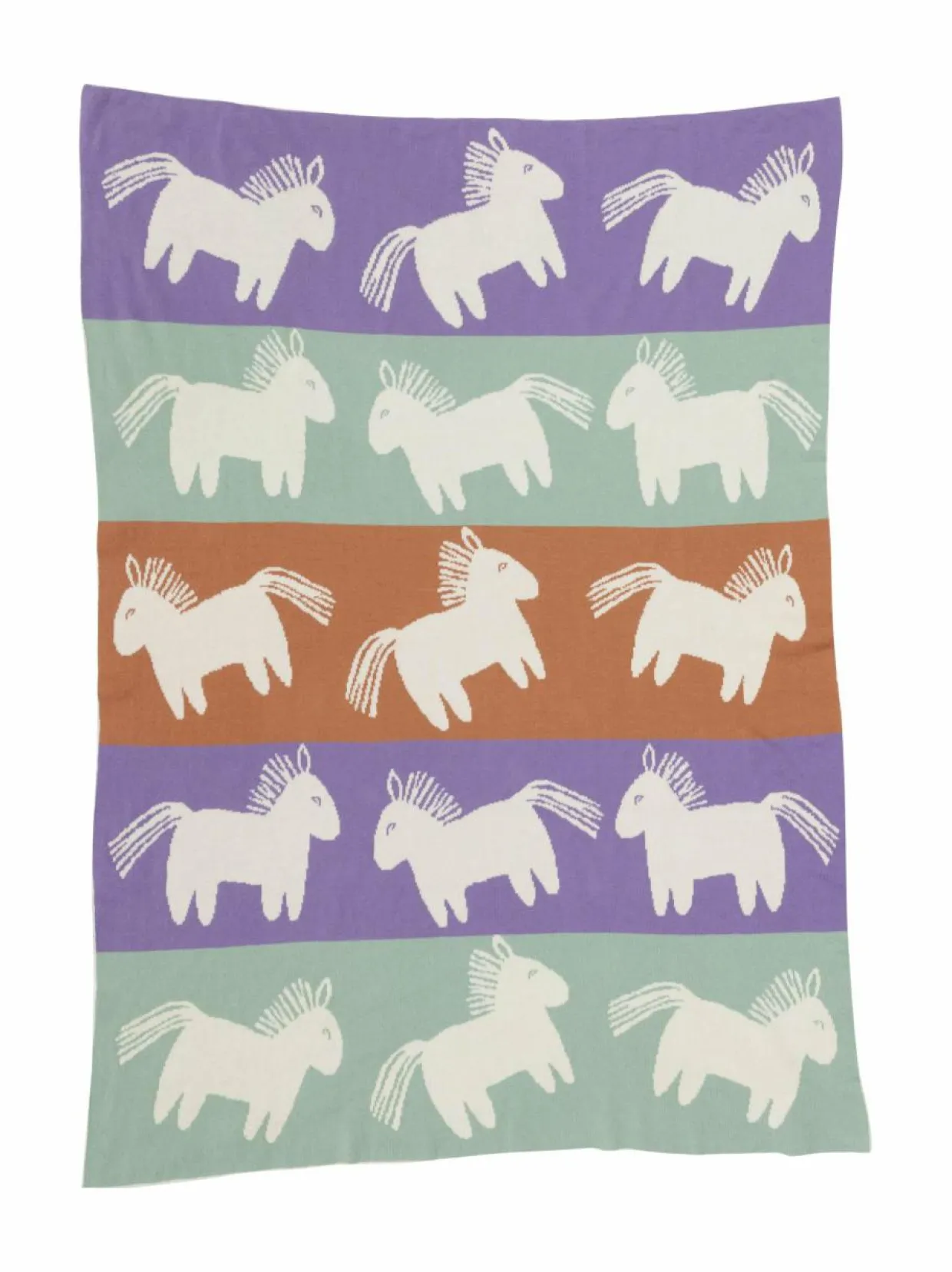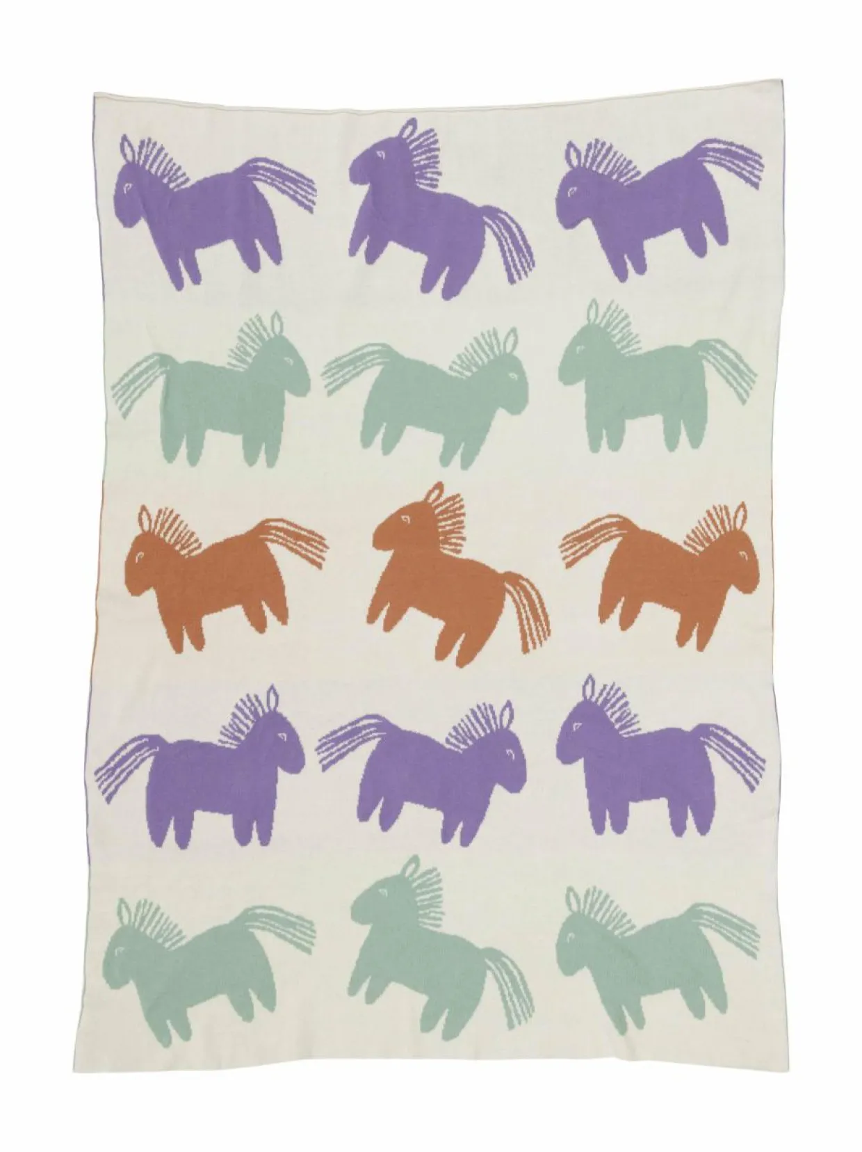 Puuvillasta valmistettu lasten torkkupeitto Heppa-kuosilla on loistava lisä lastenhuoneen sisustukseen, kevyeksi peitoksi matkalle ja vaunuihin tai lattialle makoilualustaksi.
