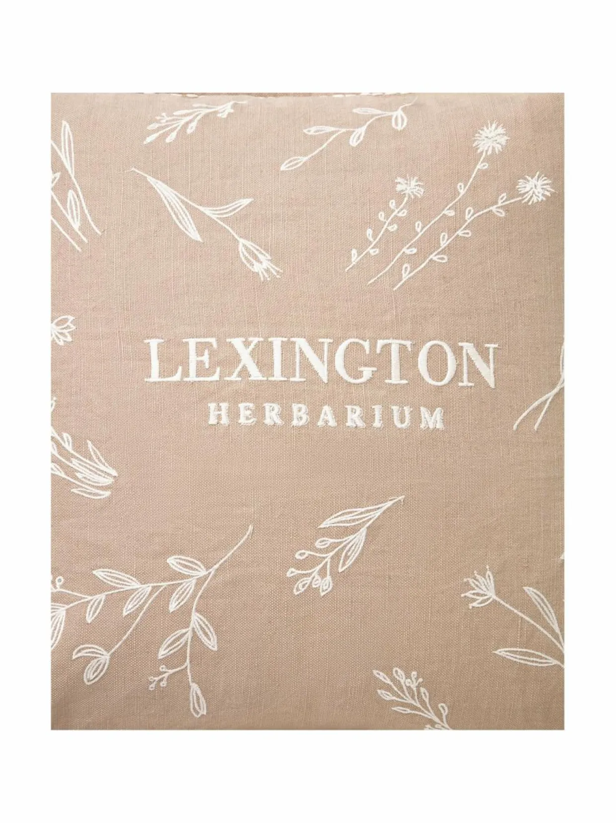 Lexingtonin pellavasekoitteesta valmistetun Herbarium-tyynynpäällisen etupuolella on tyylikäs kukkabrodeeraus ja hienostunut logo, jotka antavat sille ripauksen luonnon inspiroimaa charmia. Väreihin sopiva alareunan piilovetoketju ja tyynynpäällistä kiertävät paksut tikkaukset antavat sille hienostuneen ilmeen. Koko: 50 x 50 cm. Sopii täydellisesti ajattoman, luonnollisen sisustuksen luomiseen.