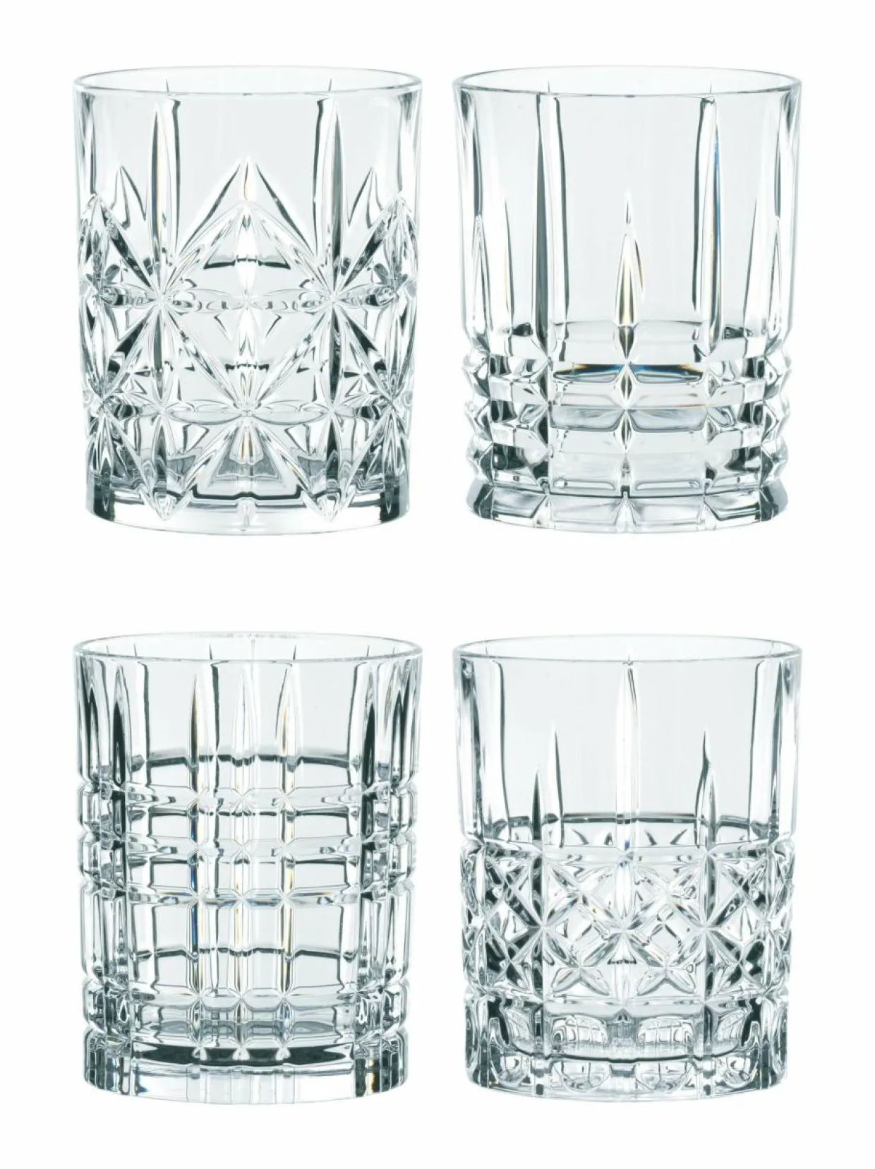 Settiin kuuluu neljä kristallilasista valmistettua Hihgland-viskilasia, joissa jokaisessa on erilainen ja näyttävä, valoa taittava kohopinta. Kaunis kristallilasi soveltuu viskin lisäksi erilaisille cocktail-juomille.
