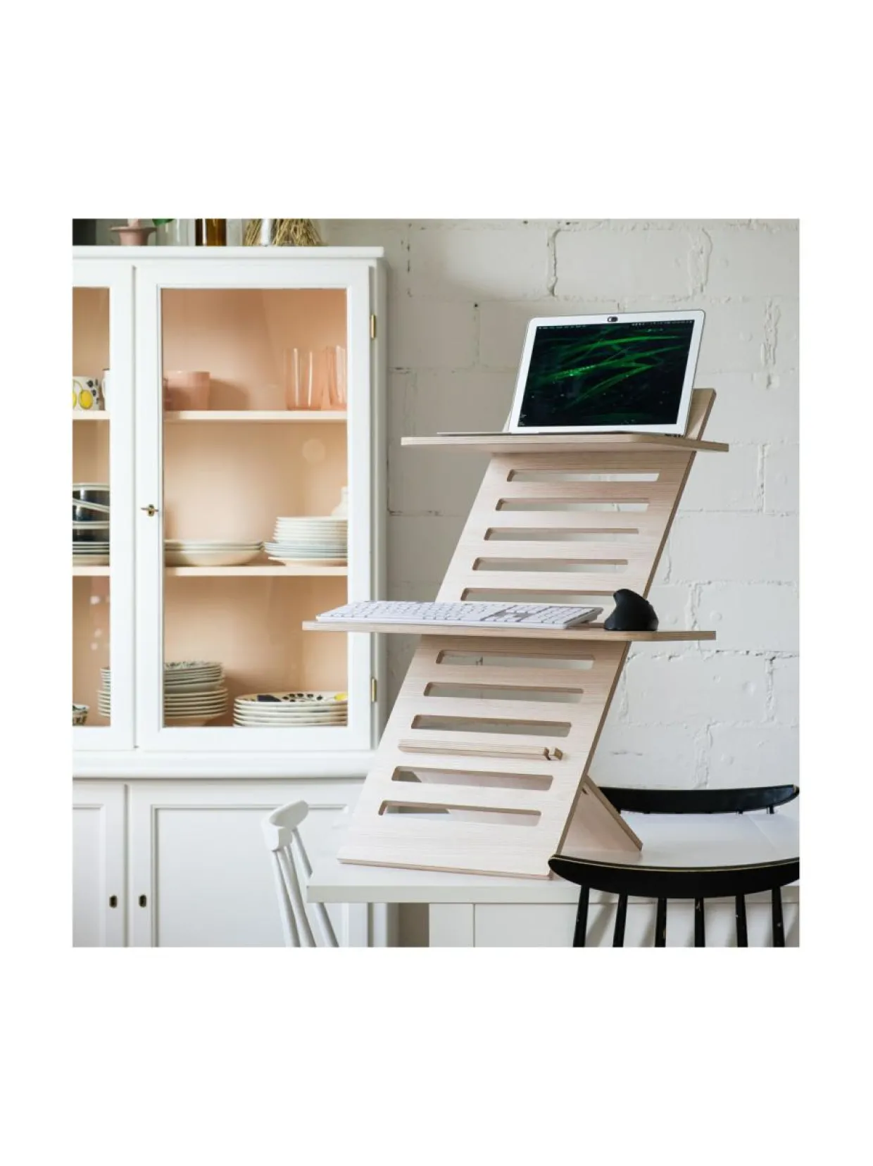 Tyylikäs ja ergonominen laptop-teline, valmistettu Suomessa.
