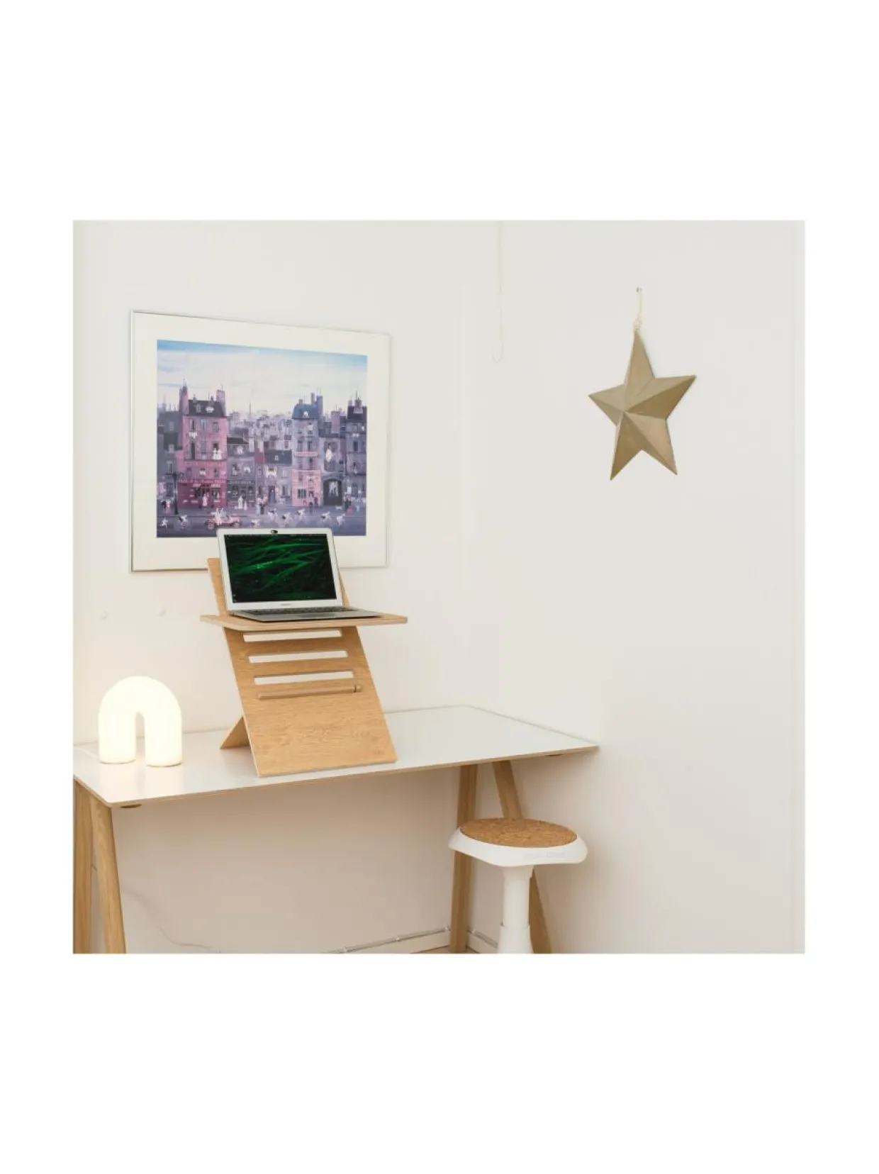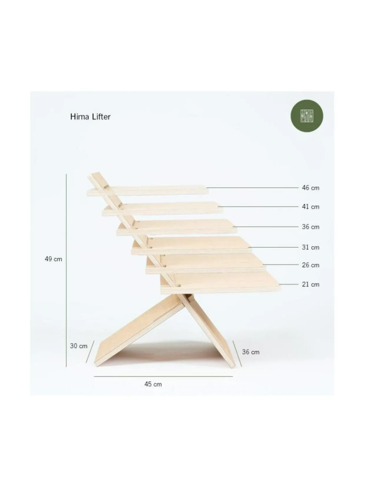 Fiksumpi, ekologisempi ja tehokkaampi tapa työskennellä. Tyylikäs ja ergonominen laptop-teline, valmistettu Suomessa. Säädä korkeutta nopeasti ja helposti; 6 eri korkeutta valittavana! Lifterin jalkalevyssä on innovatiivinen patentoitu Puujousi™, joka tekee tuotteen käyttämisestä turvallista ja mukavaa. Kolmesta osasta koostuva Hima Lifter laptop-teline on helposti kasattava ja siirreltävä. Säädä työskentelykorkeus mieleiseksi nopeasti ja helposti. Yksinkertaisen rakenteen ansiosta tuotteen käyttö on mukavaa sekä tehokasta ja se muuttaa minkä tahansa kiinteän pöydän seisomatasoksi hetkessä! Kantokyky 20kg. Suomalaista kestävää koivuvaneria, tammilaminaatti.
