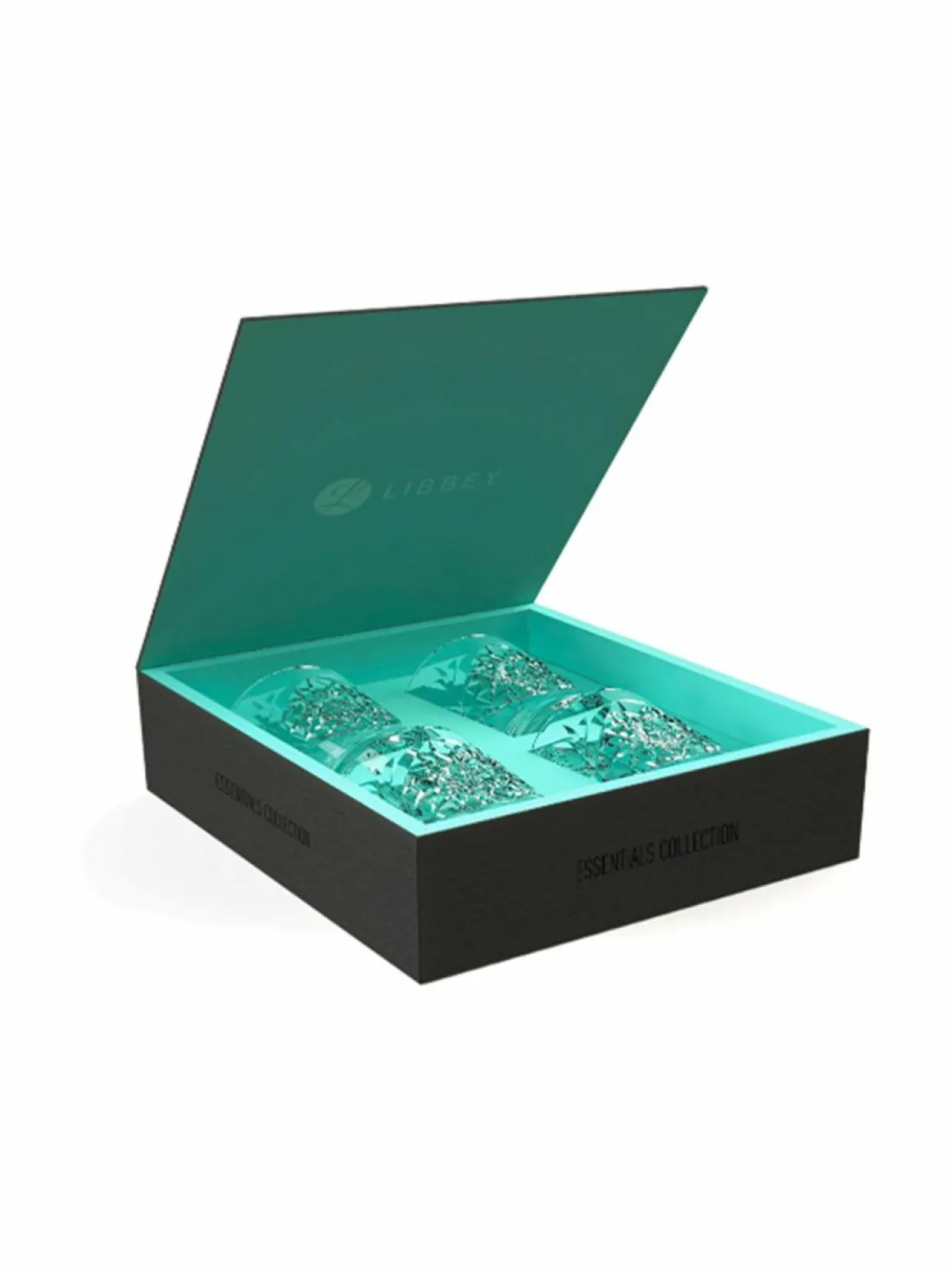 Tyylikkäässä lahjapakkauksessa on neljä lasia, joiden tilavuus on 350 ml, halkaisija 8,5 cm ja korkeus 10,5 cm. Laseja kiertävät upeat Hobstar-kuvioleikkaukset, joilla koristeltuja laseja Libbey loi jo 1900-luvun alun amerikkalaisen kristallilasimuotoilun kultakaudella.