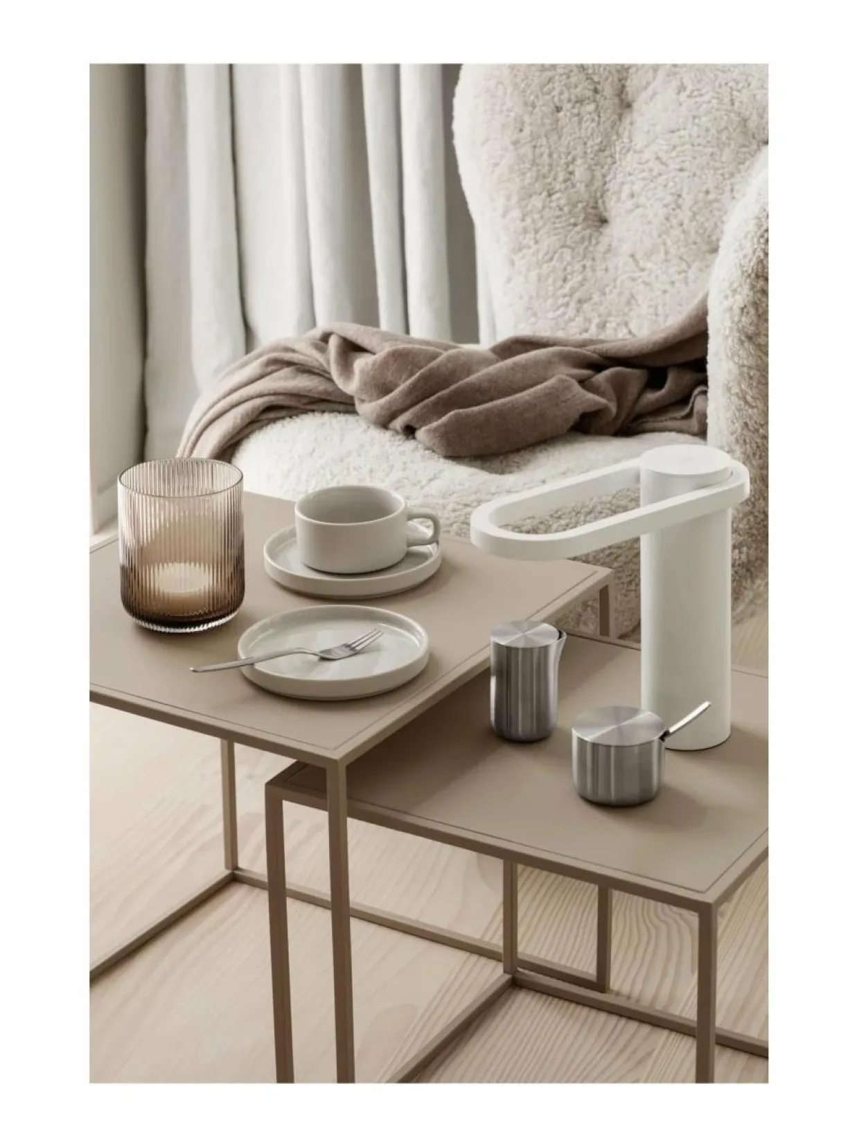 Ranskalaisen suunnittelijan Antoine Rouzeaun kehittämä Hoop-valaisin on sopii sekä sisä- ja ulkokäyttöön. Sen korkea vesitiiviys yhdistettynä pitkäkestoiseen akun kanssa mahdollistaa monenlaisia käyttökohteita. Soikean renkaan pohjasta suunattu valo luo miellyttävän tunnelman. Valaisimen akku ladataan yksinkertaisen magneettiliitännän kautta ja näyttö ilmaiseen latausprosessin punaisen tai vihreän valon avulla.