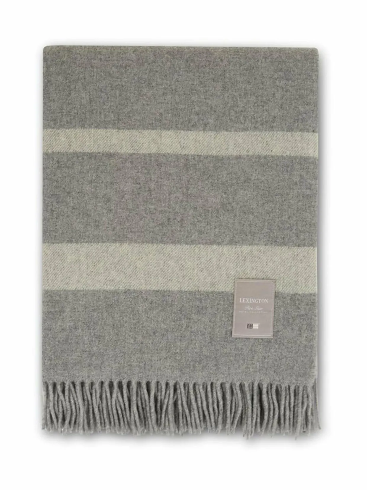 Lexington Hotel Wool Throw -huopa on valmistettu pehmeästä villasta. Päätyjen raidat ja hapsut viimeistelevät ilmeen.