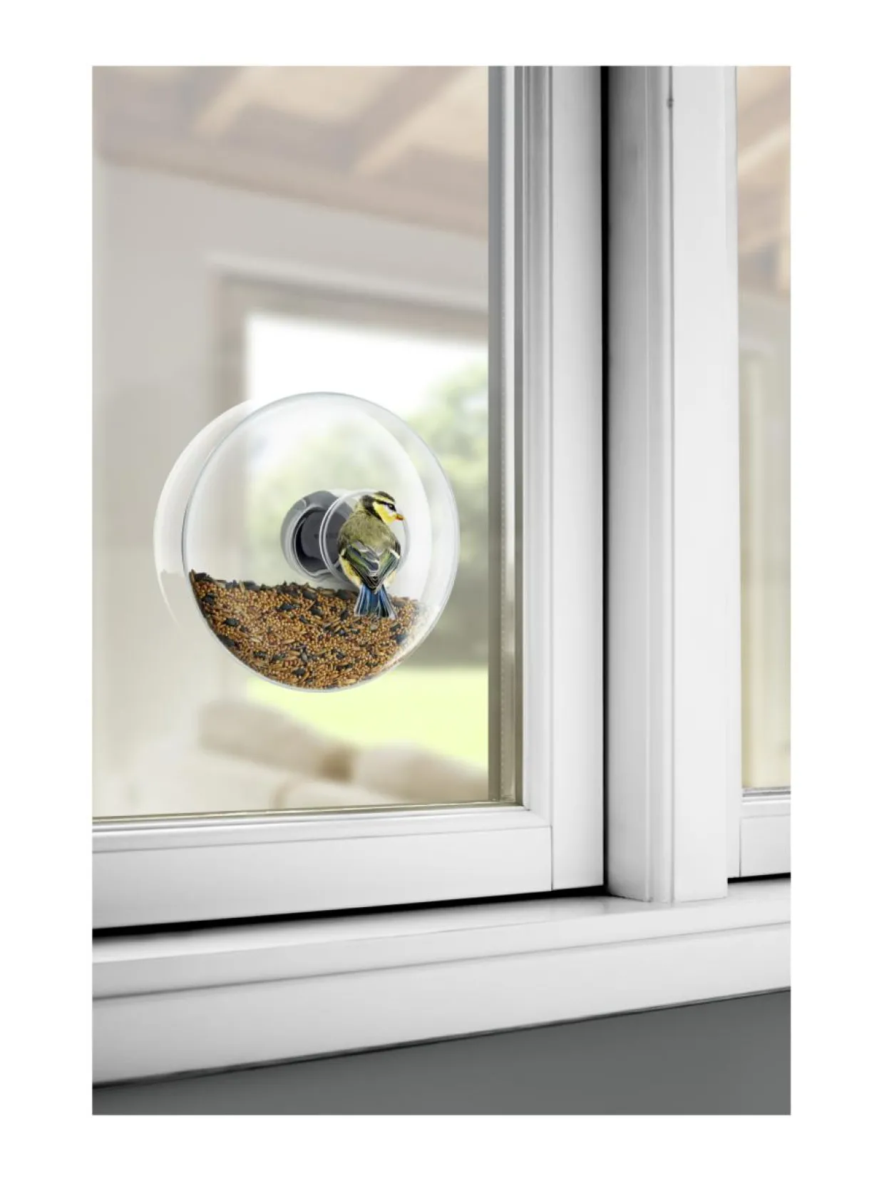 Eva Solon ikkunalintulauta auttaa pihapiirin pikkulintuja selviämään kylmän talven yli. Lintulauta kiinnitetään suoraan ikkunaruutuun voimakkaan kaksipuolisen teipin avulla, ja lasinen säiliö on helppo irrottaa kiinnikeosasta esimerkiksi puhdistusta varten. Lintulaudan halkaisija on 19,5 cm ja suuaukko on mitoitettu juuri sopivaksi pihan tavalllisimmille pikkulinnuille. Täyttäminen onnistuu helposti suuaukon kautta, ja tilaa on jopa 350 ml:lle linnunruokaa. Voidaan pestä astianpesukoneessa.
