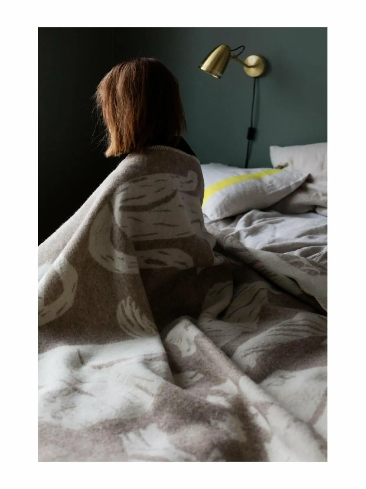 Kissanpäivät-huopa on 100 % puhdasta uutta villaa. Tuote on kudottu brändin omassa kutomossa Lapualla.