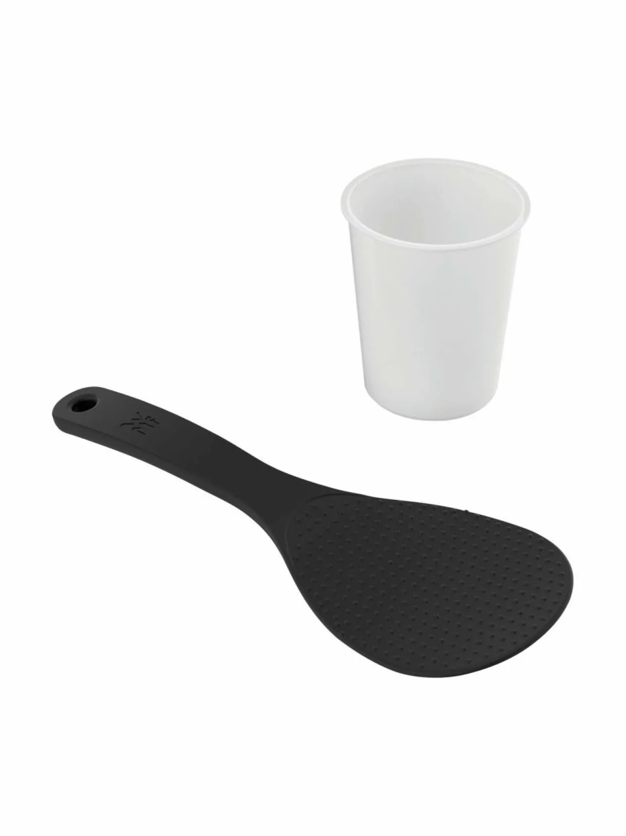 Kooltaan kompakti WMF KitchenMinis® Rice Cooker With To-Go Lunch Box -riisinkeitin vie vain vähän tilaa keittiön tasolta. Monikäyttöisellä keittimellä on helppo valmistaa esimerkiksi riisiä, kvinoaa, linssejä ja kasviksia. Keitin on valmistettu ruostumattomasta Cromargan®-teräksestä.