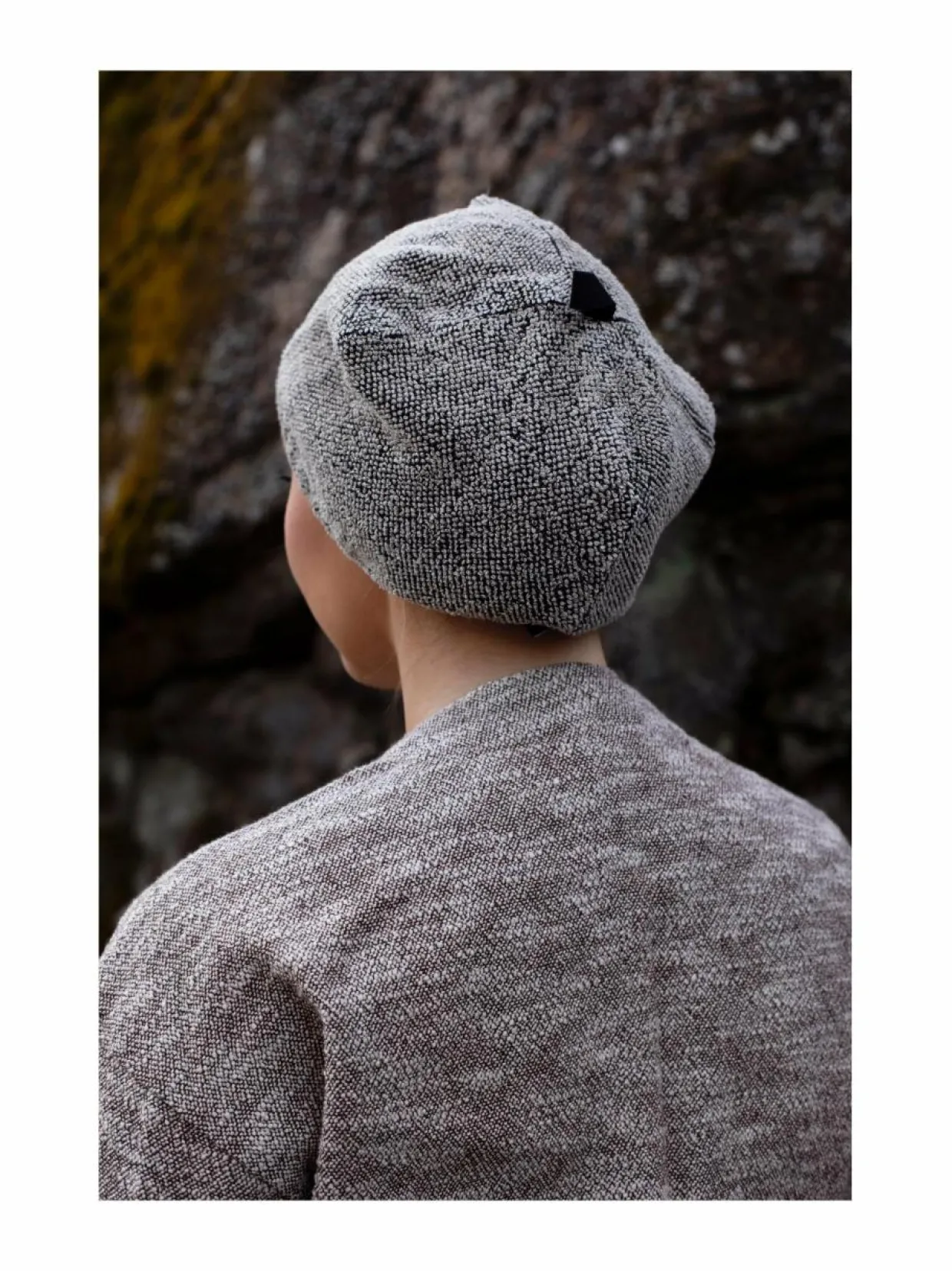 Kivi-saunalakki on ommeltu pellavafroteen ylijäämäkankaasta toteuttaen zero waste -periaatetta.