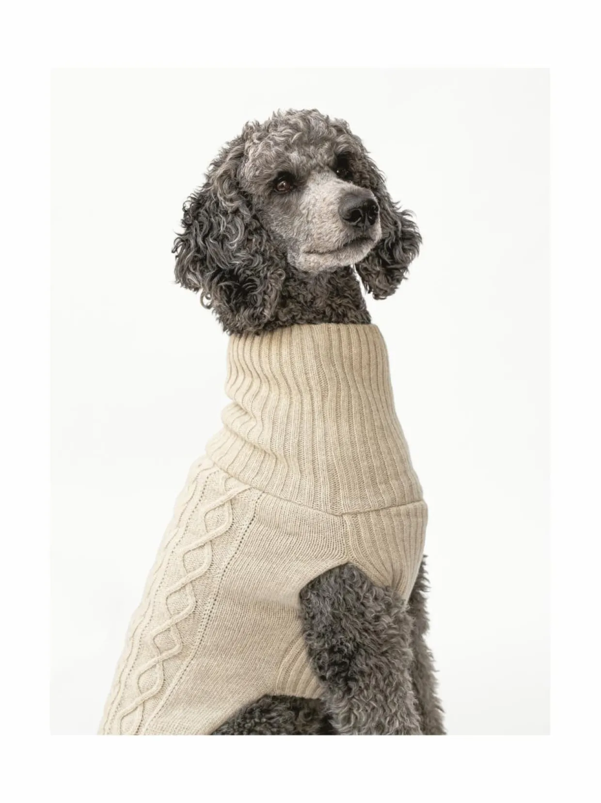 Koiran neule, palmikko, vaalea beige
