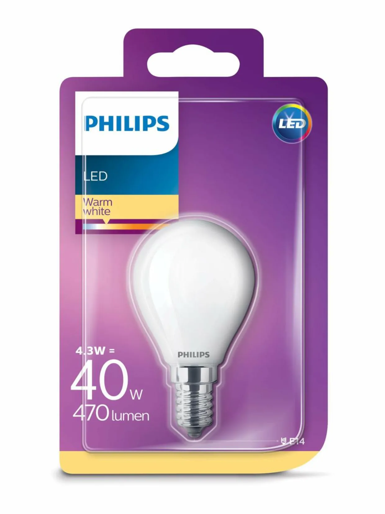 Philips LED Classic 4,3W(40W) P45 E14 -mainoslamppu. Ei-himmennettävä.