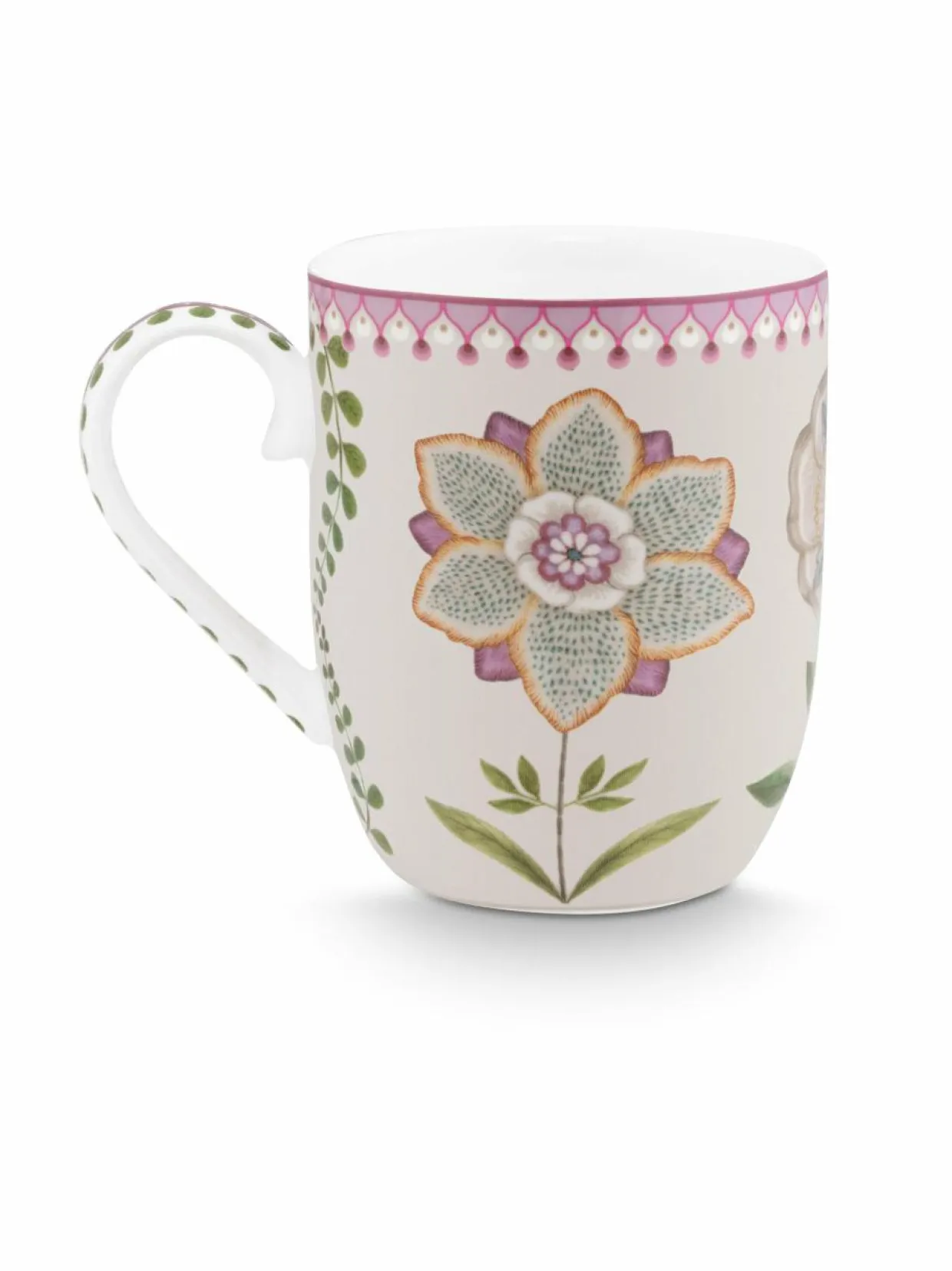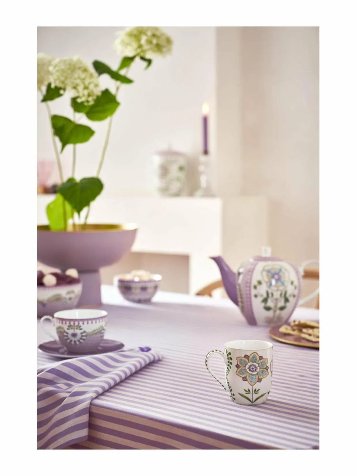 Tuotenumero165568209 MateriaaliPosliinia Hoito-ohjeetSuosittelemme käsinpesua kuvioiden takia ValmistusmaaKiina VäriOFF WHITE Koko145 ml AvainsanatPip Studio, muki, pieni muki, kukkamuki