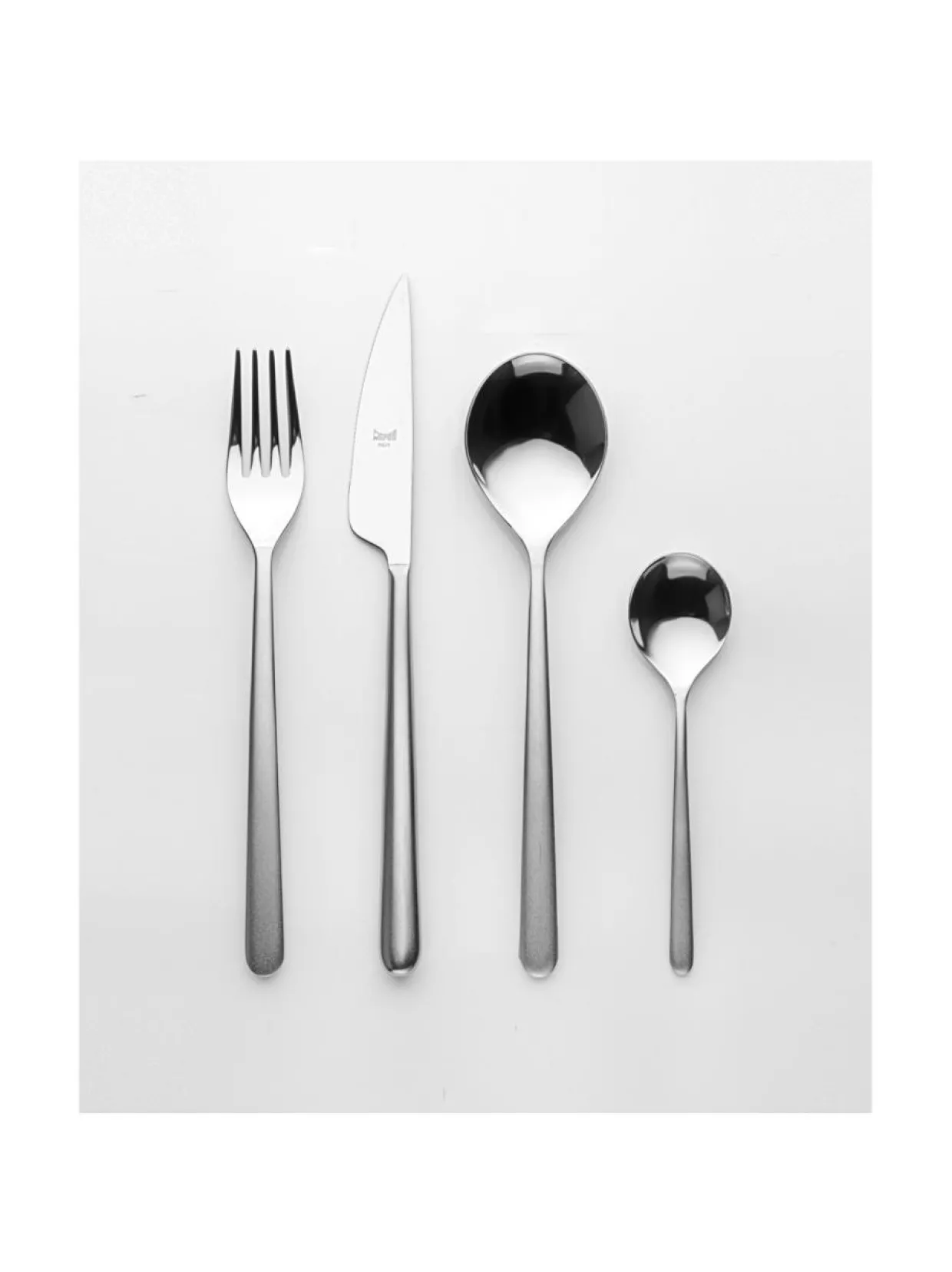 Linea Frozen aterinsetin aterimien kahvat on viimeistelty metallinhohtoisella jäähilemäisellä erikoispinnoitteella. Aterimien yläosat ovat kiiltävää ruostumatonta terästä. Aterinsetti sisältää kuusi ruokahaarukkaa, kuusi ruokaveistä, kuusi ruokalusikkaa ja kuusi kahvilusikkaa. Materiaali on korkealaatuista suomalaista konepesunkestävää ruostumatonta terästä.