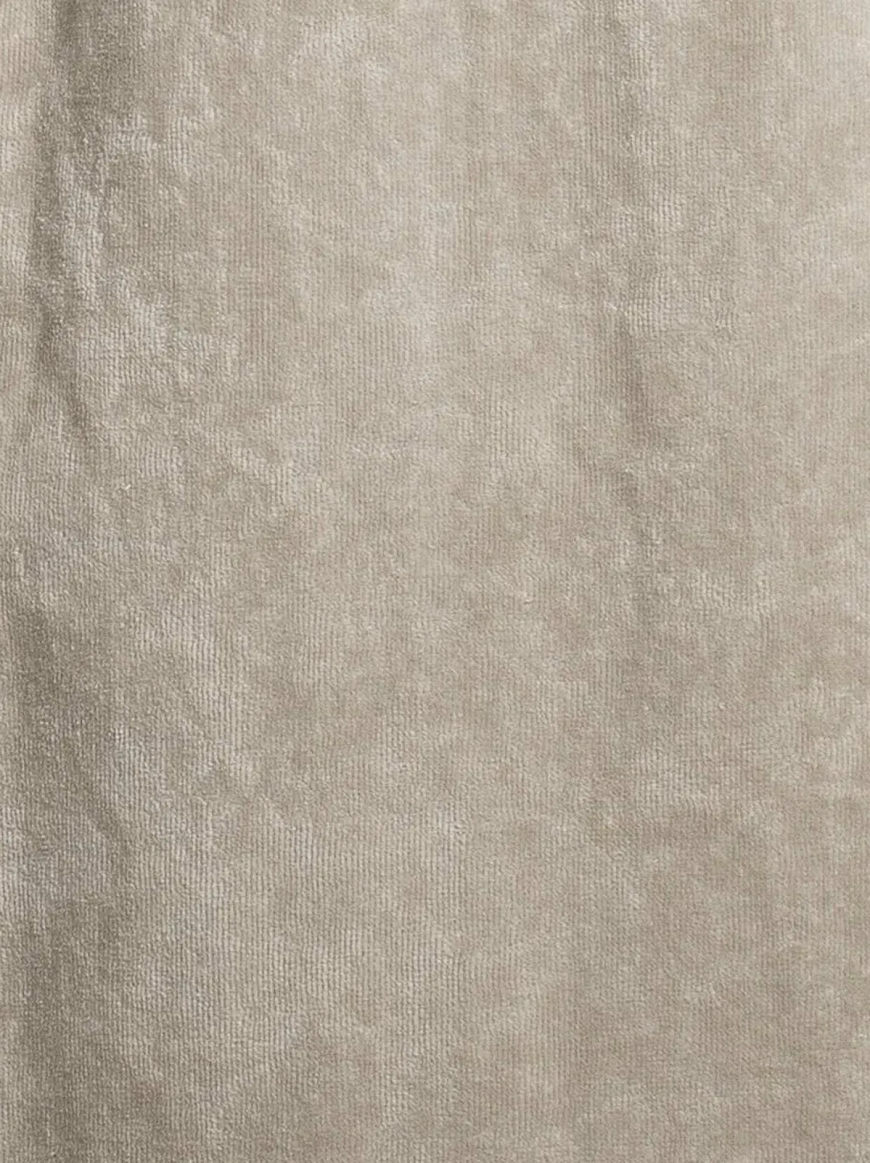 Villa Stockmannin Lounge-kylpytakki on imukykyistä puuvillavelouria, jonka lankaluku on 450. Eleganttia takkia koristavat kontrastiset poimut. Mallissa on kaksi paikkataskua ja sidottava vyö.