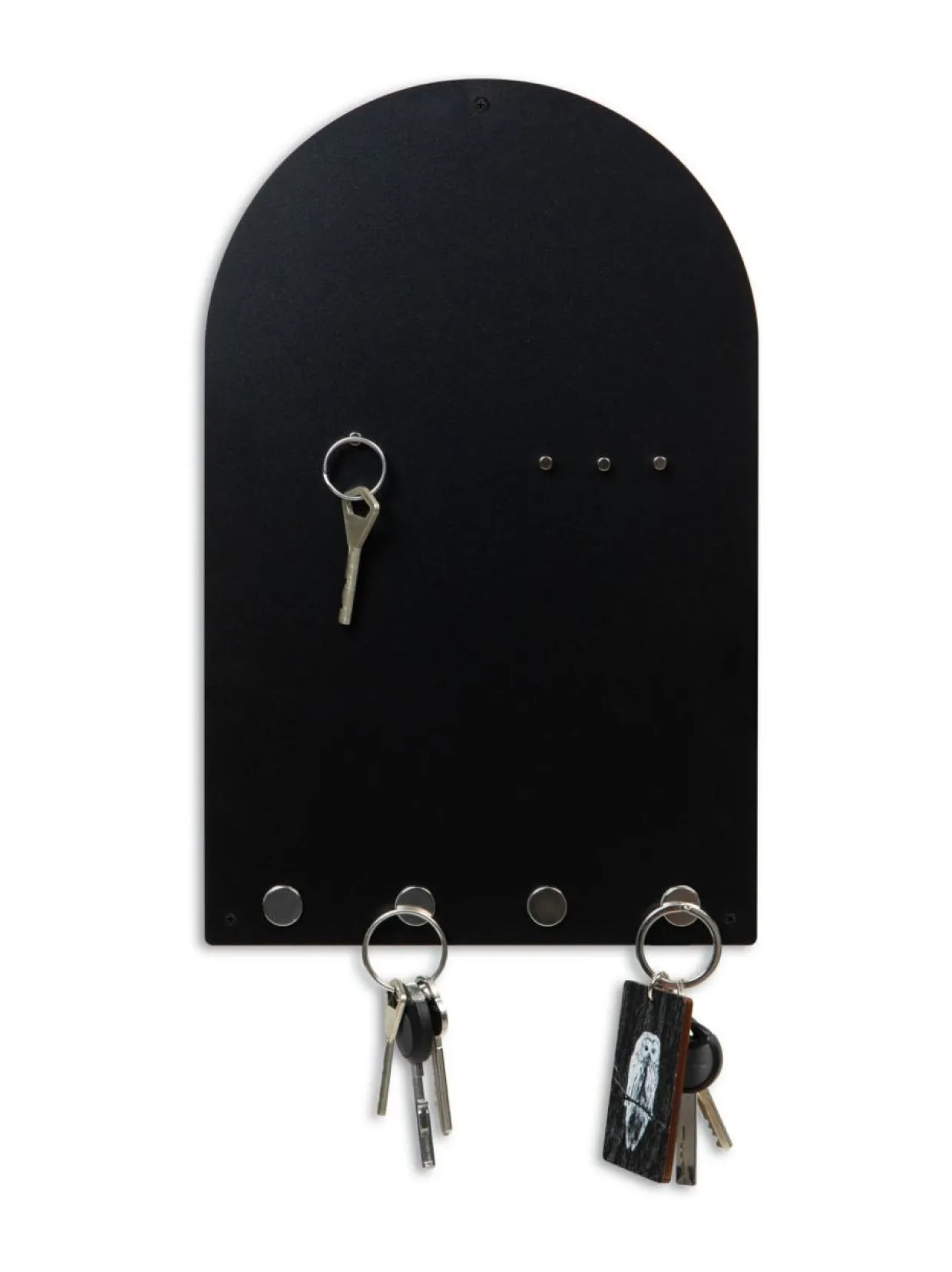 Avaintaulussa on 4 kiinteää magneettia avaimille ja 4 irrallista magneettia muistilappuja ja kortteja varten. Kaari magneettitaulu on myös tyylikäs, käytännöllinen ja ajaton sisustuselementti.