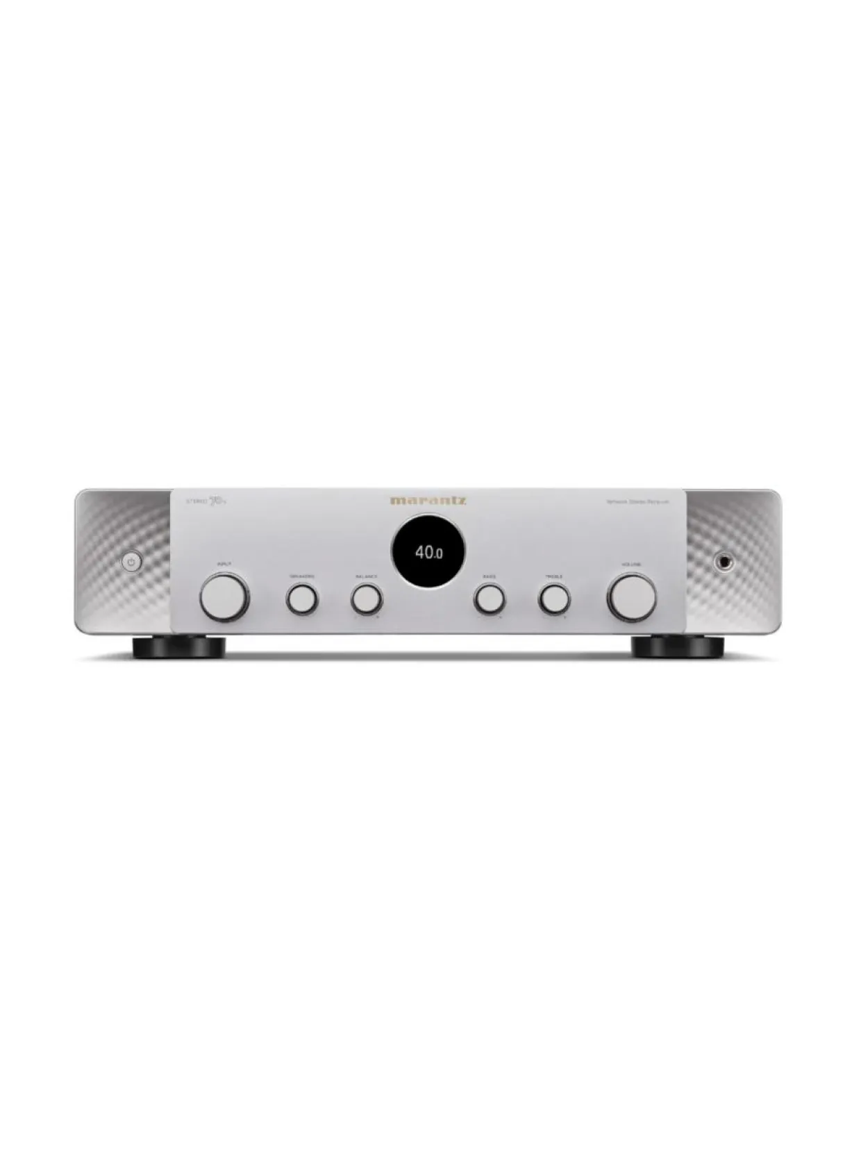 Marantz Stereo 70s -vahvistin tarjoaa laadukkaan kotiteatteriäänen kahdella kanavalla. Vahvistimen monipuoliset liitännät ja ominaisuudet tekevät siitä täydellisen kumppanin älytelevisioille, pelikonsoleille ja striimauslaitteille. Laitteessa on kuusi HDMI-tuloa, joista kolme tukee 8K-resoluutiota, mahdollistaen yhteensopivuuden nykyaikaisten laitteiden kanssa ja tarjoten teräväpiirtoisen kuvanlaadun.