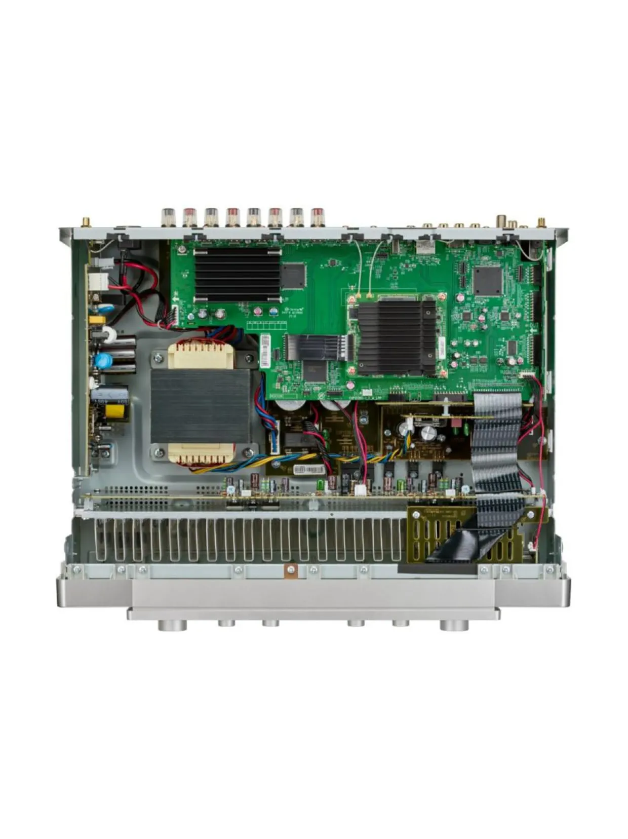 Stereovahvistin HDMI-liitännöillä ja langattomilla ominaisuuksilla.