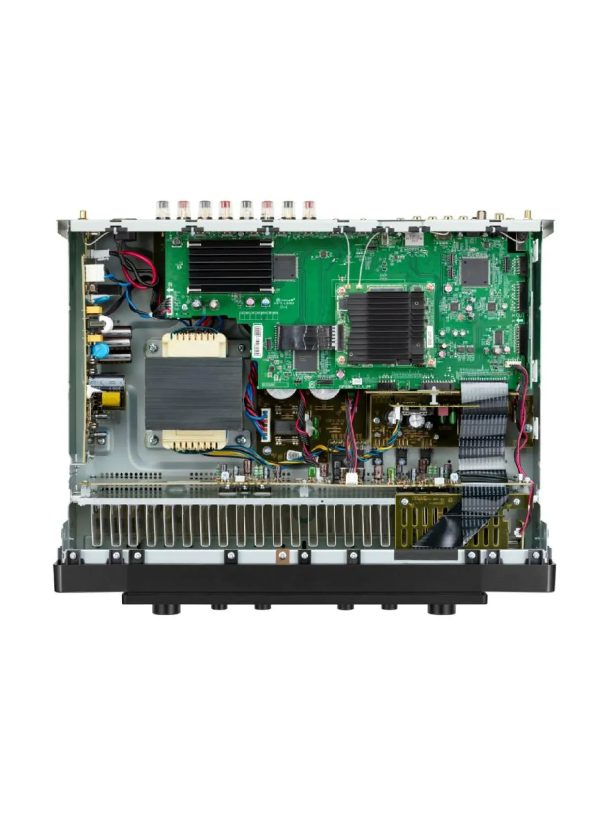Stereovahvistin HDMI-liitännöillä ja langattomilla ominaisuuksilla.