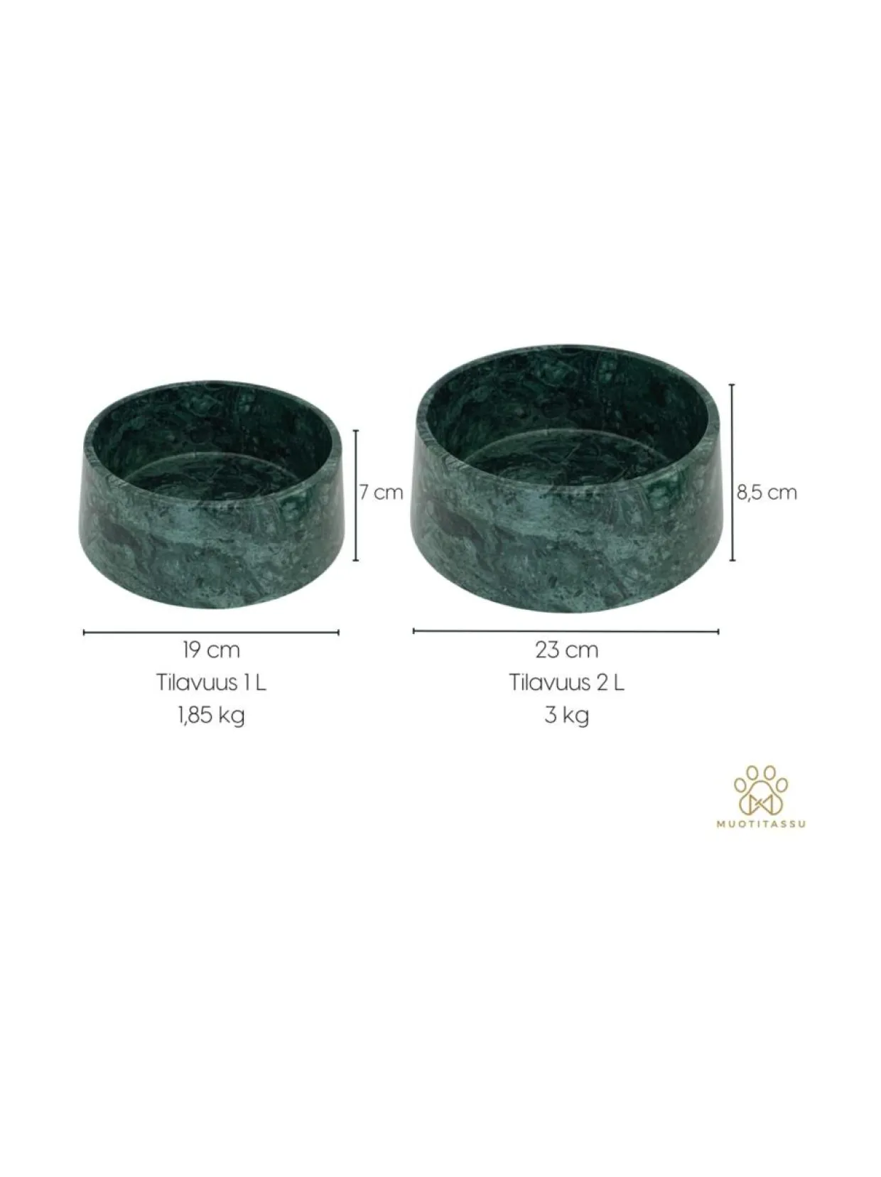 Paino pitää kulhon hyvin paikoillaan koirasi ruokaillessa. Pohjassa on 4 naarmuuntumista estävää huopatyynyä. Upea marmori on valmistusmateriaalina käytännöllinen ja uniikki – jokainen kulho on hieman erilainen ja siksi ainutlaatuinen! Materiaalin ansiosta myös ruoka ja vesi pysyvät kylminä kuuminakin päivinä.