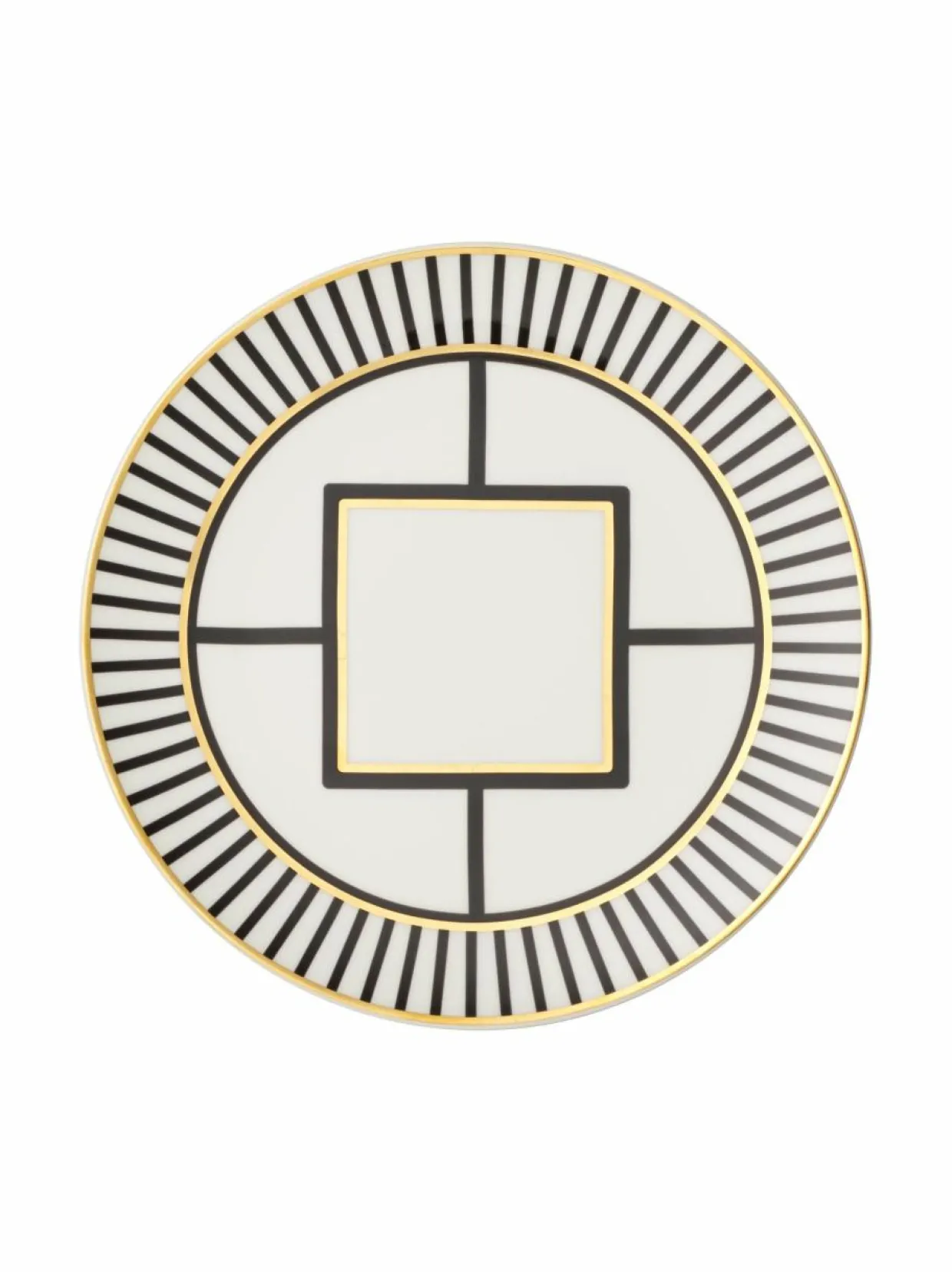 Villeroy & Bochin MetroChic-astiasarjaan kuuluvaa posliinilautasta tyylittää Barry Goralnickin suunnittelema geometrinen kuvio, joka tuo jokaiseen kattaukseen klassista eleganssia. Inglaze Gold -teknologian ansiosta kuvio kestää hyvin käyttöä ja pesua.