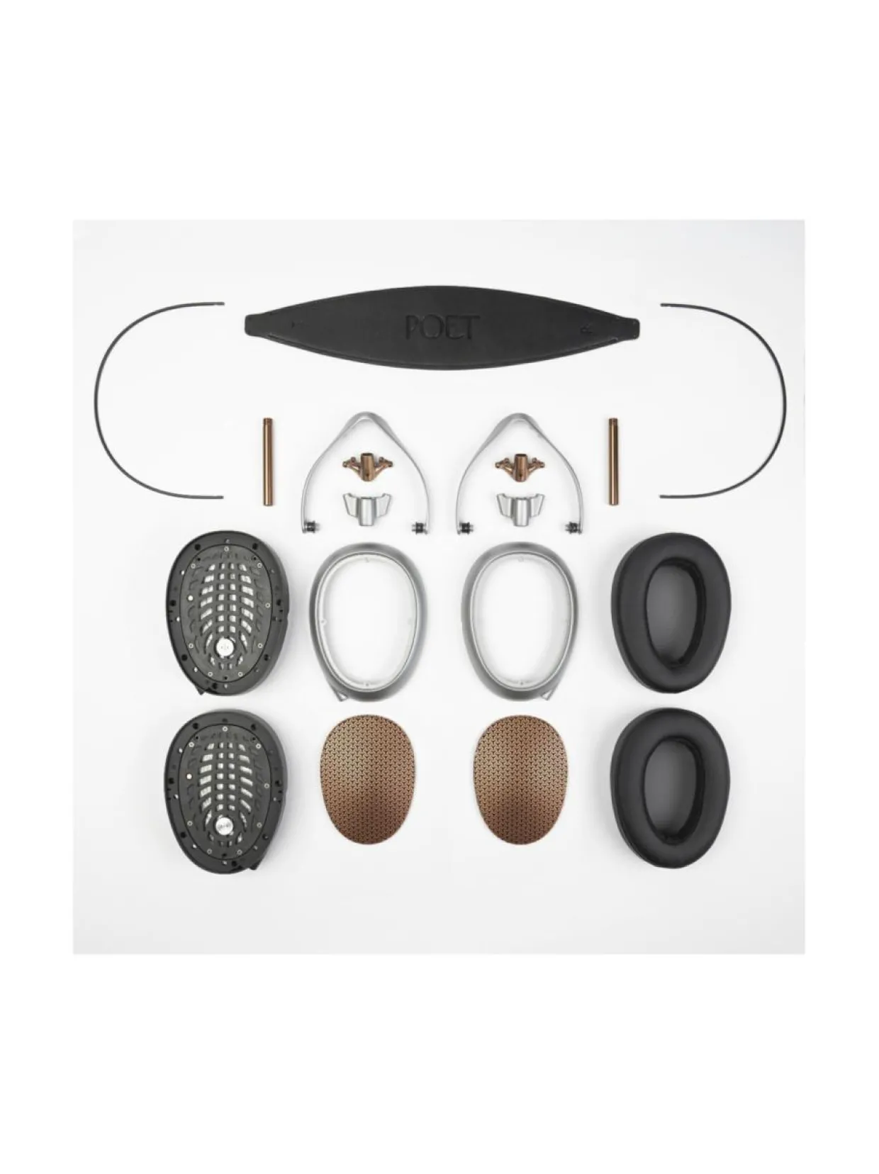 Teräsritilän monimutkaiset kuviot valittiin huolellisesti, jotta ne korostaisivat hienoa äänentoistoa, johon pyrimme. Yhdessä magnesiumrungon kanssa POET on visuaalisesti näyttävä ja erittäin kestävä. Pehmeä mokkanahkainen päätuki ja joustava titaaniseospanta edistävät poikkeuksellista ergonomiaa ja jakavat painon tasaisesti, jotta kuulokkeen istuvuus olisi mahdollisimman mukava ja jokainen kuuntelusessio ilahduttaisi sinua.