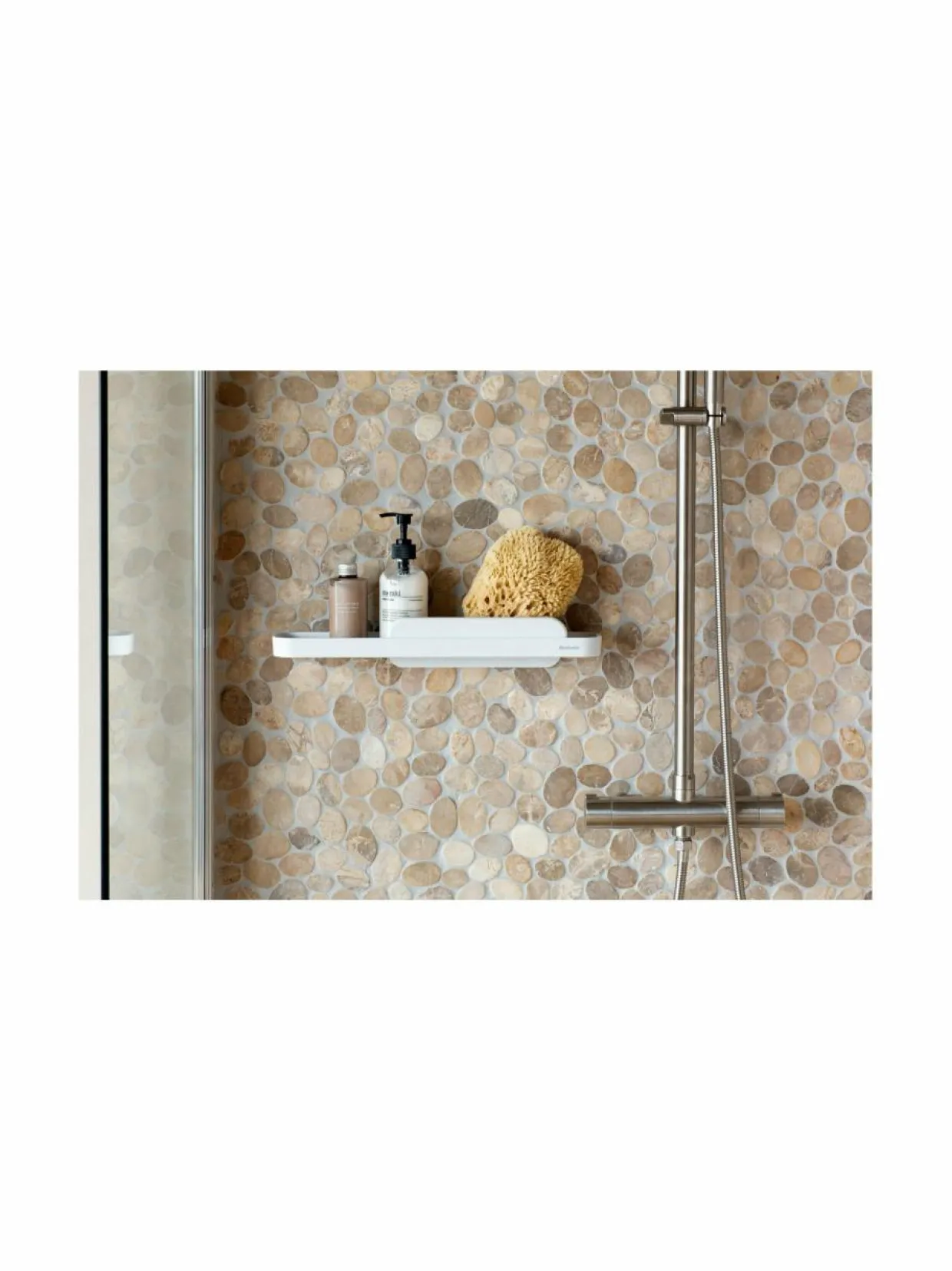Järjestä suihkusi täydellisesti yhdellä kertaa tällä älykkäällä Brabantia MindSet -suihkuhyllyllä. Hyllyn reunassa kätevästi pieni suihkulasta mukana. Hylly pitää tyytyväisenä shampoosi tai suihkugeelisi. Pienessä suihkulastassa on minimalistinen muotoilu ja se on kätevä suihkun ovien ja laattojen kuivaukseen.
