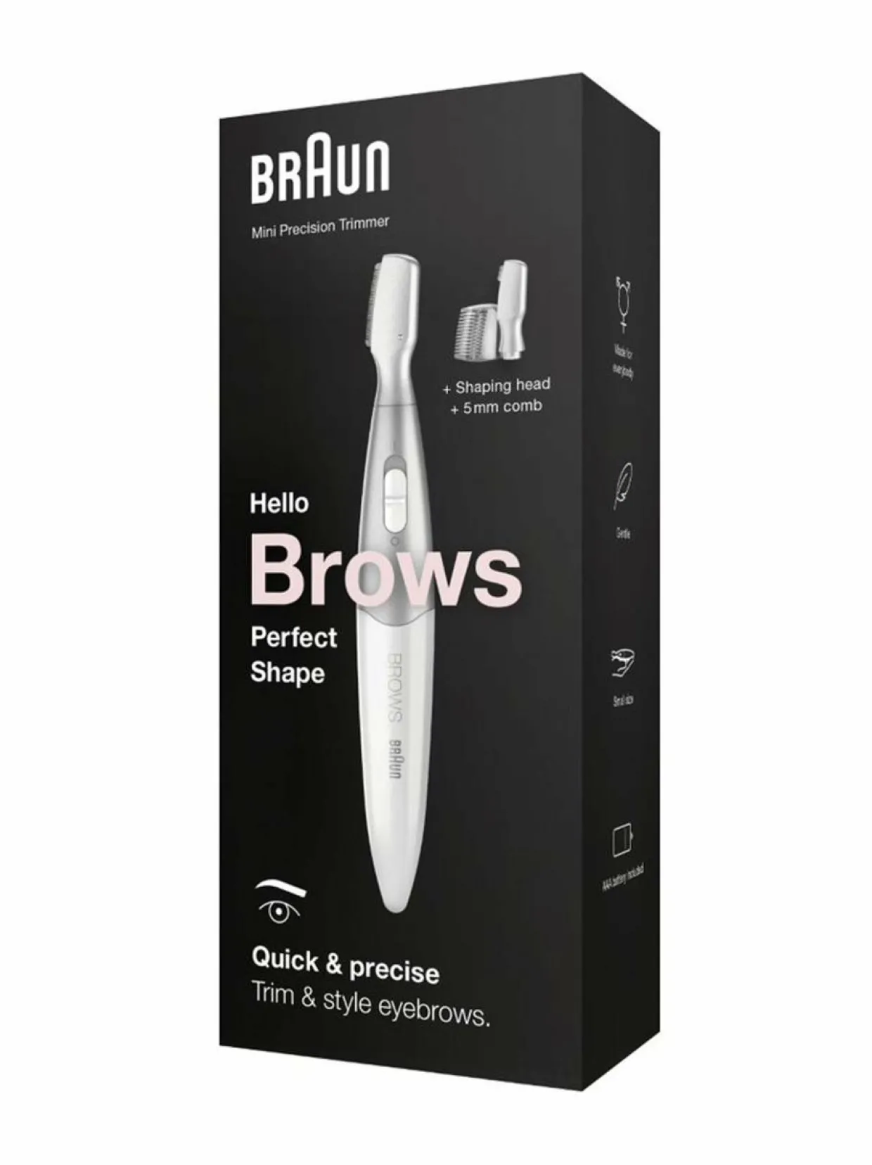 Braunin minitrimmeri kulmakarvoille on naisille suunniteltu, erittäin tarkka kulmakarvatrimmeri joka toimii myös bikinitrimmerinä.
