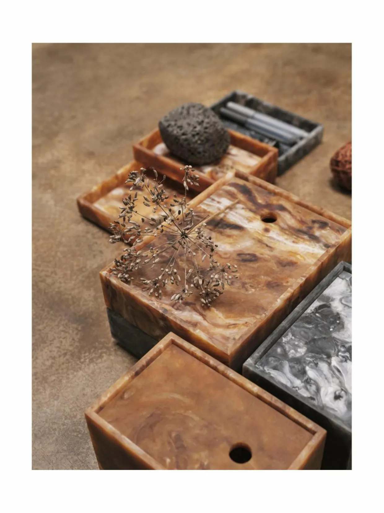 Ferm Livingin Mist-säilytystarjotin on kaunis ja elegantti matalareunainen säilytyslaatikko, jossa yhdistyy käytännöllisyys ja linjakkaan geometrinen muotokieli. Suorakulmainen vati on valmistettu valuhartsista.