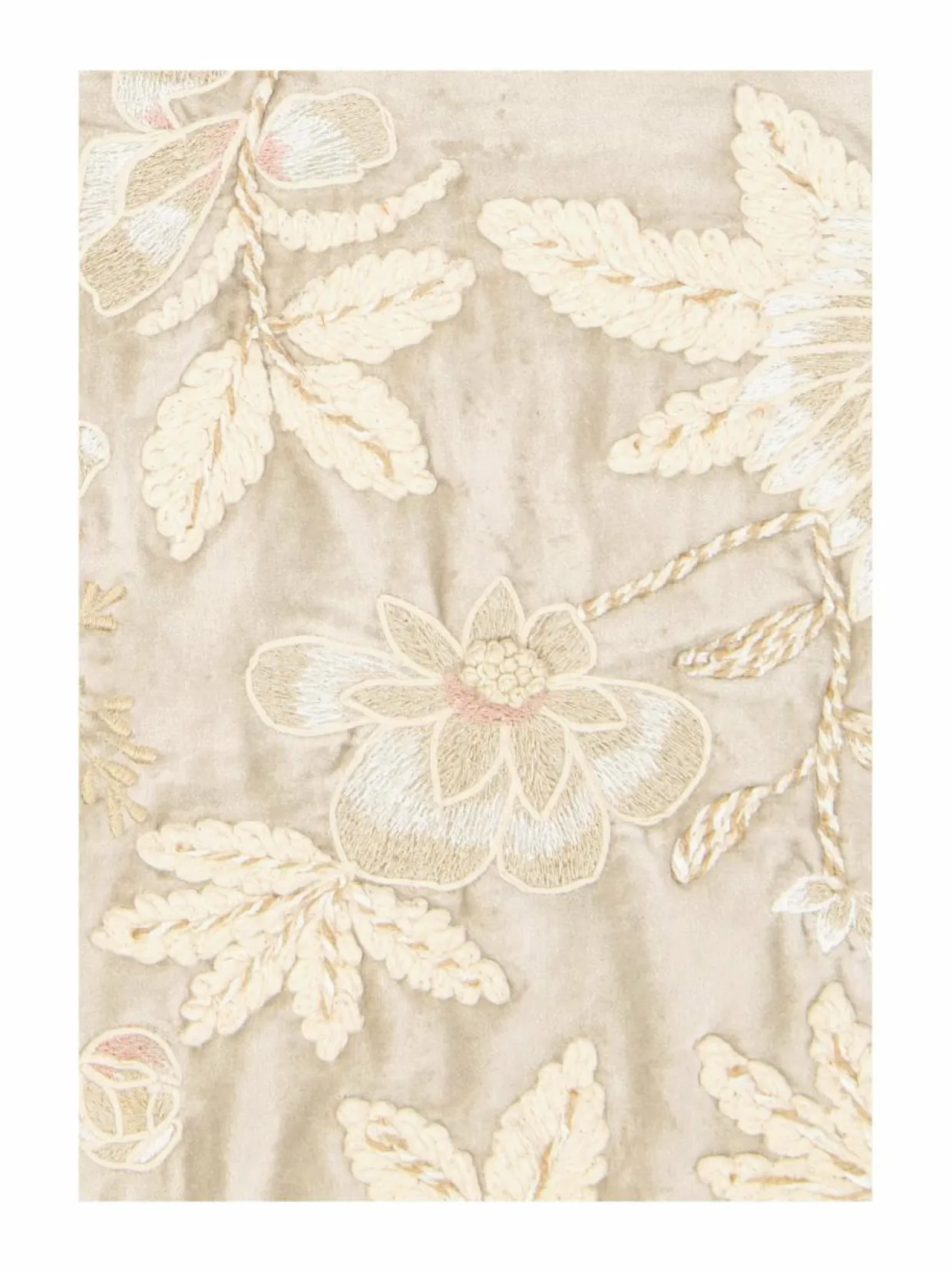 Villa Stockmannin Mona-tyynynpäällinen tuo sisustukseen kaunista ja pehmeää eleganssia. Tämä 45 x 45 cm kokoinen tyynynpäällinen on valmistettu puuvilla-viskoosisamettista. Kukkabrodeeraukset lisäävät hienostuneen yksityiskohdan, joka tuo luonnon inspiroimaa kauneutta huoneeseen. Piilotettu vetoketjusuljenta tekee tyynynpäällisen käytöstä helppoa ja sujuvaa. Mona-tyynynpäällinen on täydellinen lisä sohvalle, nojatuolille tai sängylle, tuoden kodikkuutta ja tyylikkyyttä mihin tahansa tilaan.