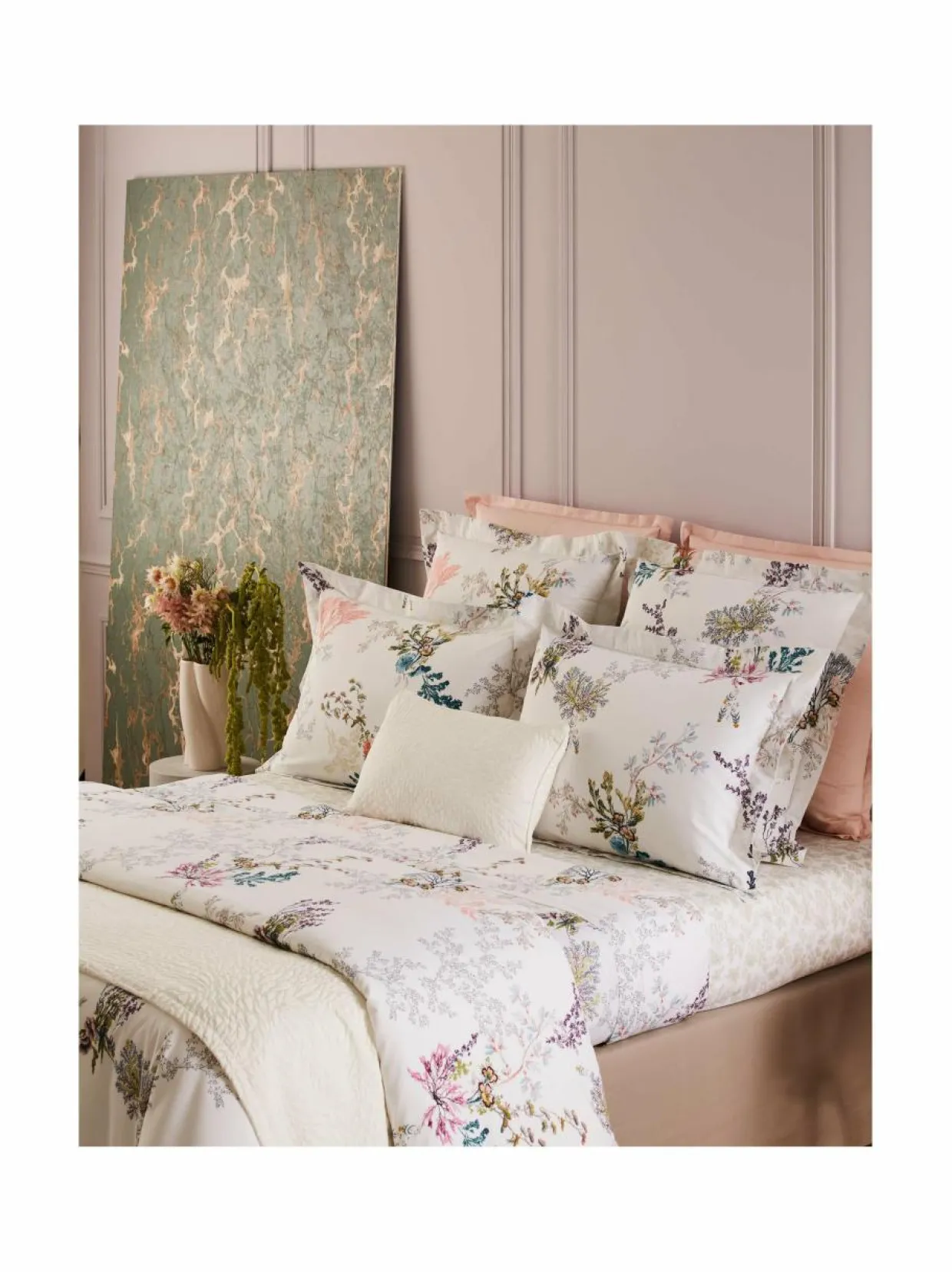 Yves Delormen Naiades-tyynyliina on pehmeän tuntuinen, ja sen kaunis kuosi tuo eleganssia makuuhuoneeseen. Tyynyliina on valmistettu kevyestä ja hengittävästä luomupuuvillabatistista.