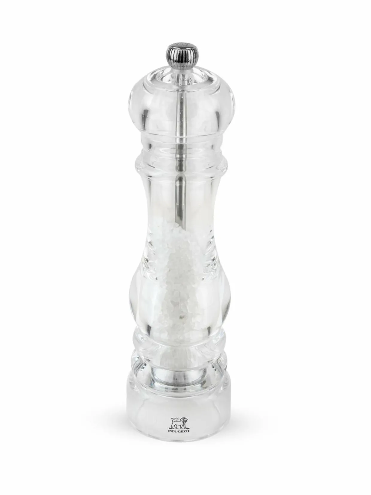 Läpikuultavassa suolamyllyssä on karkeuden säätöön tarkoitettu metallisäädin päällä ja erittäin laadukas ruostumattomasta teräksestä valmistettu myllyosa. Hienostuneella myllyllä saat juuri sopivan hienoa ja karkeaa suolarouhetta.
