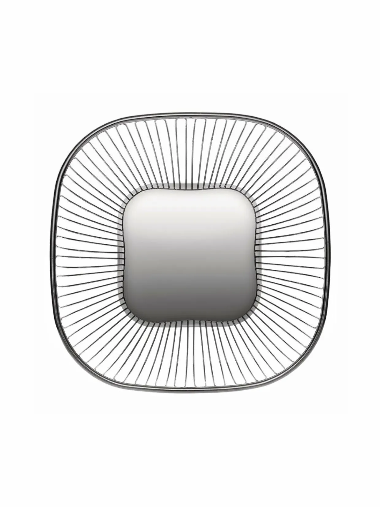 Teräksisessä 845-metallilankakorissa on peilikiillotettu pohja. Muotoilukokeilut taivutetulla teräslangalla olivat alusta asti ominta Alessia ja niistä syntyneet klassikot ovat edelleenkin supersuosittuja.