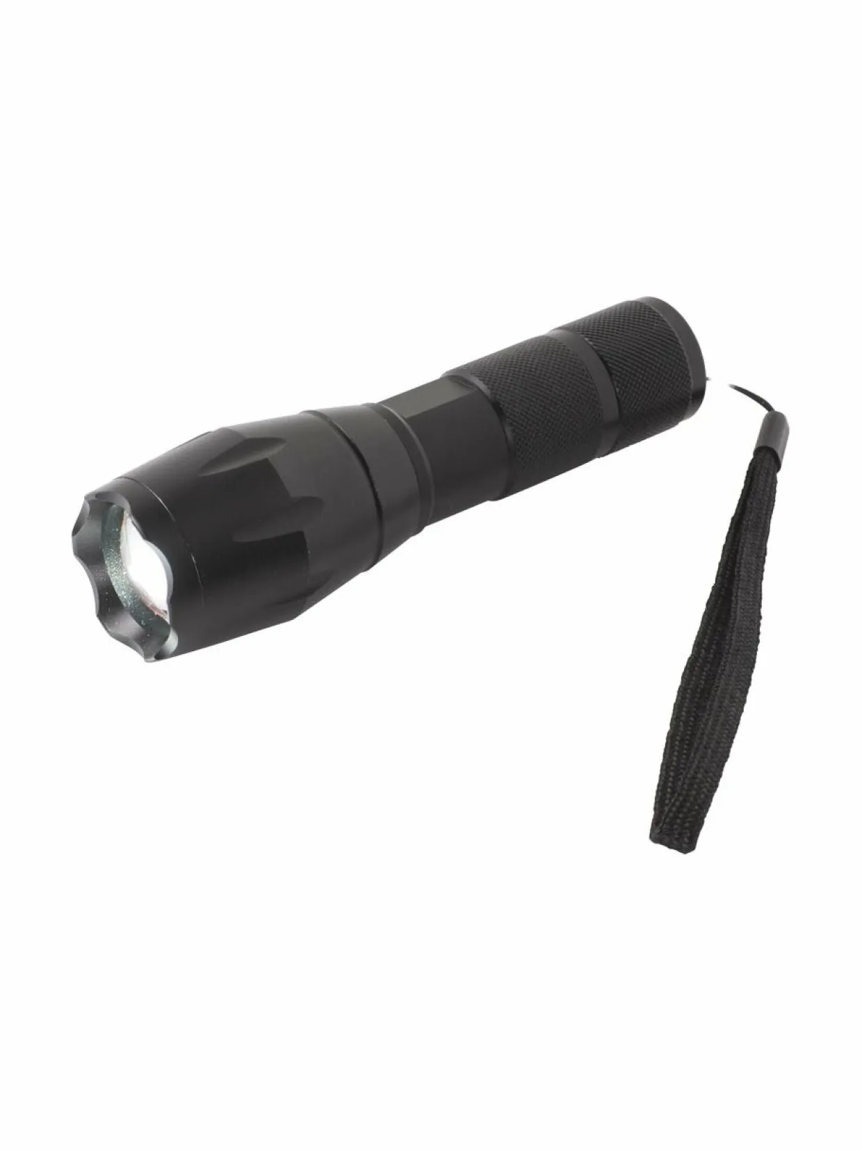 Tyylikäs alumiinikuorinen musta perustaskulamppu LED-valonlähteellä. Paristot myydään erikseen.